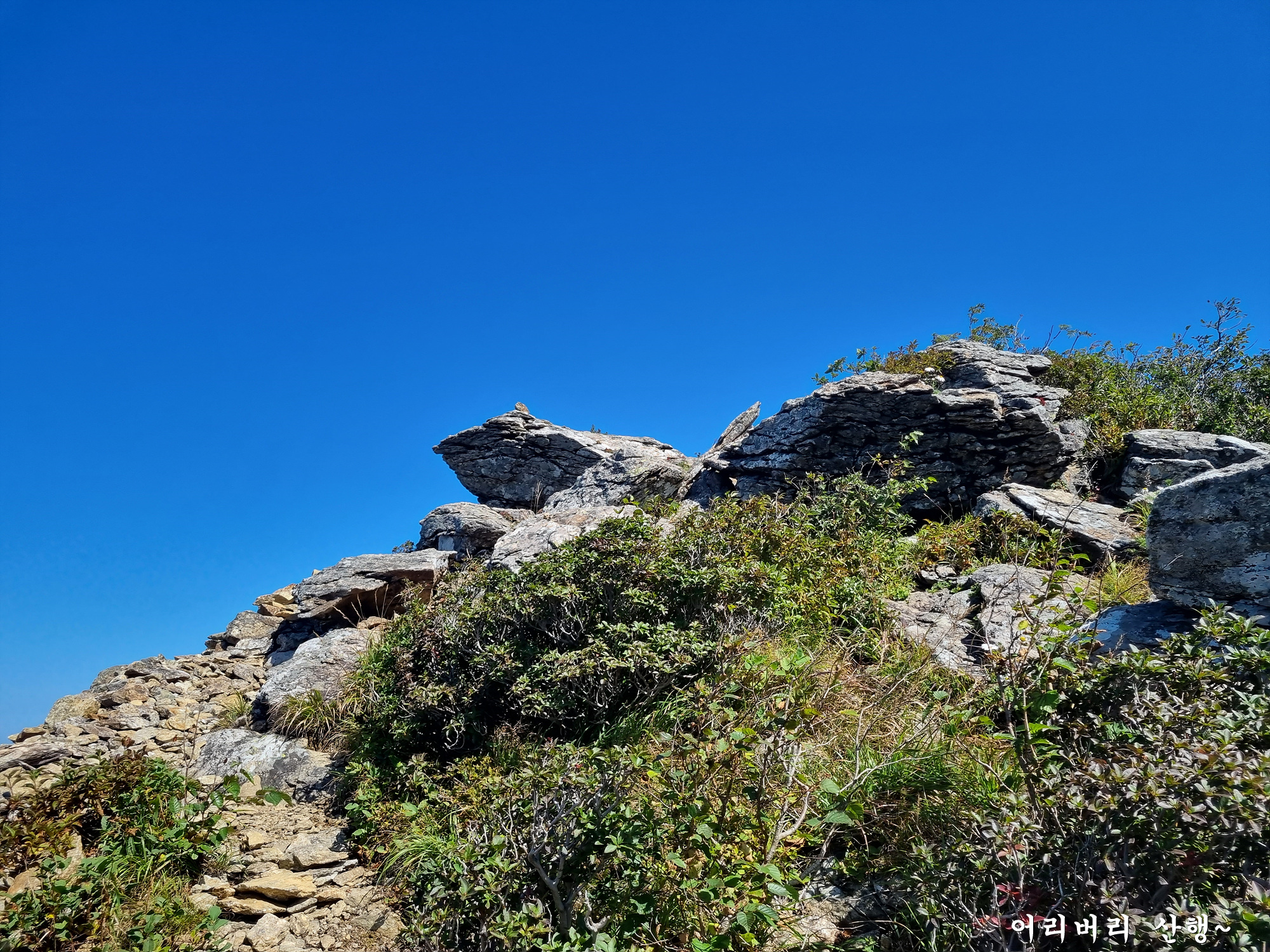 사실 끝청에 올라서면 잡목들이 지저분하게 깔려서 사진이 깔끔하질 못한데 끝청 직전 조망바위에 올라서면 아주
