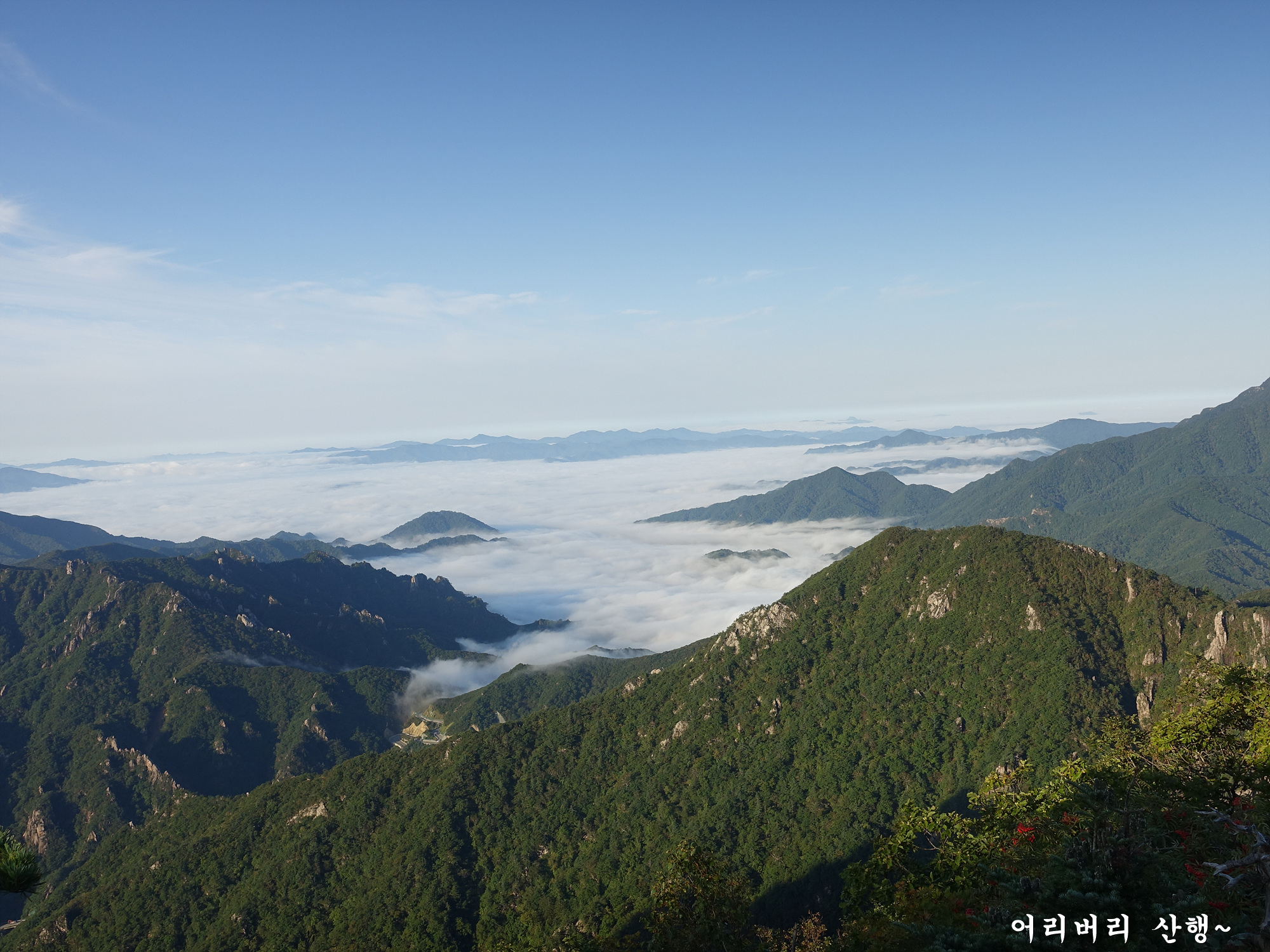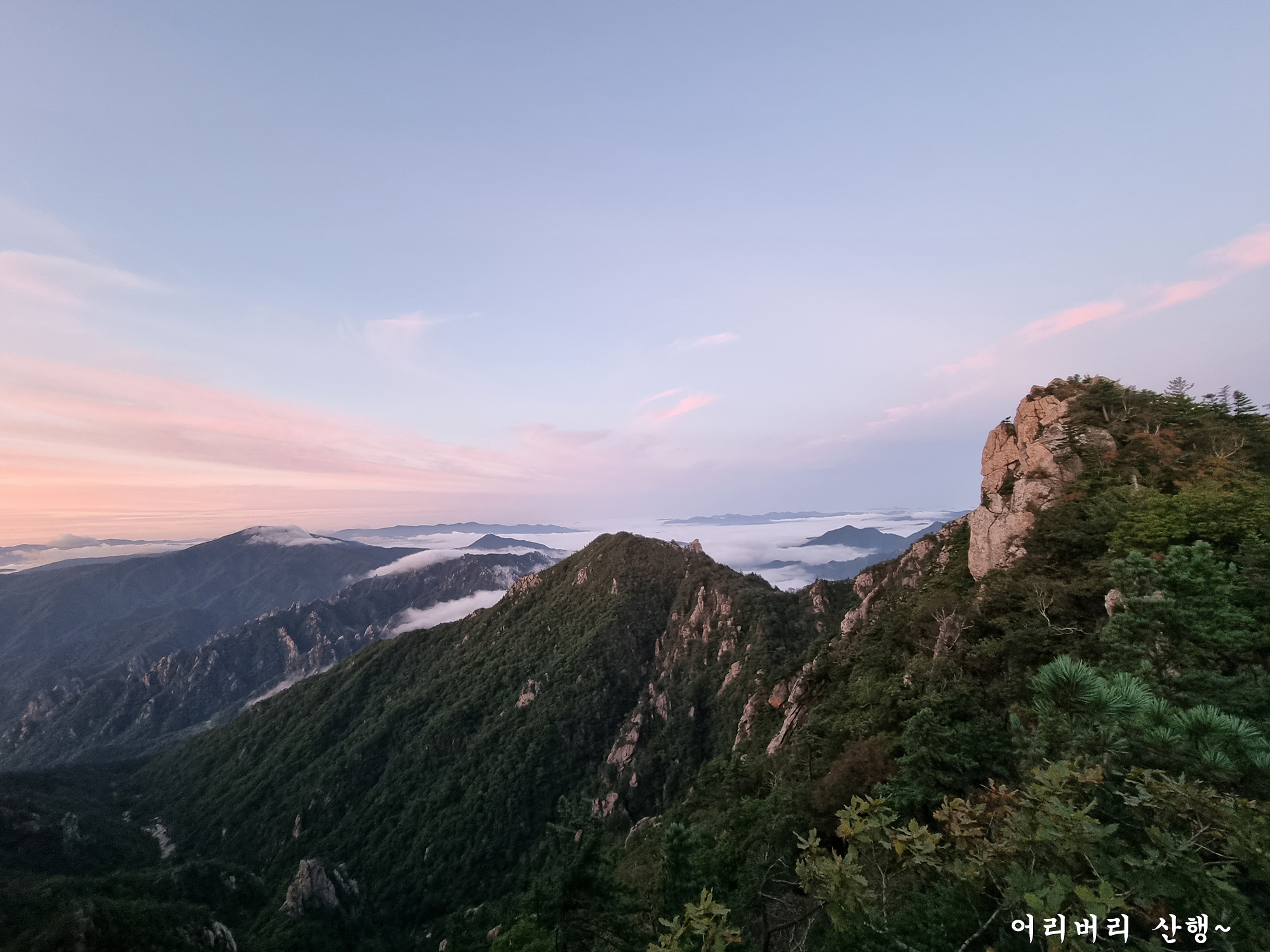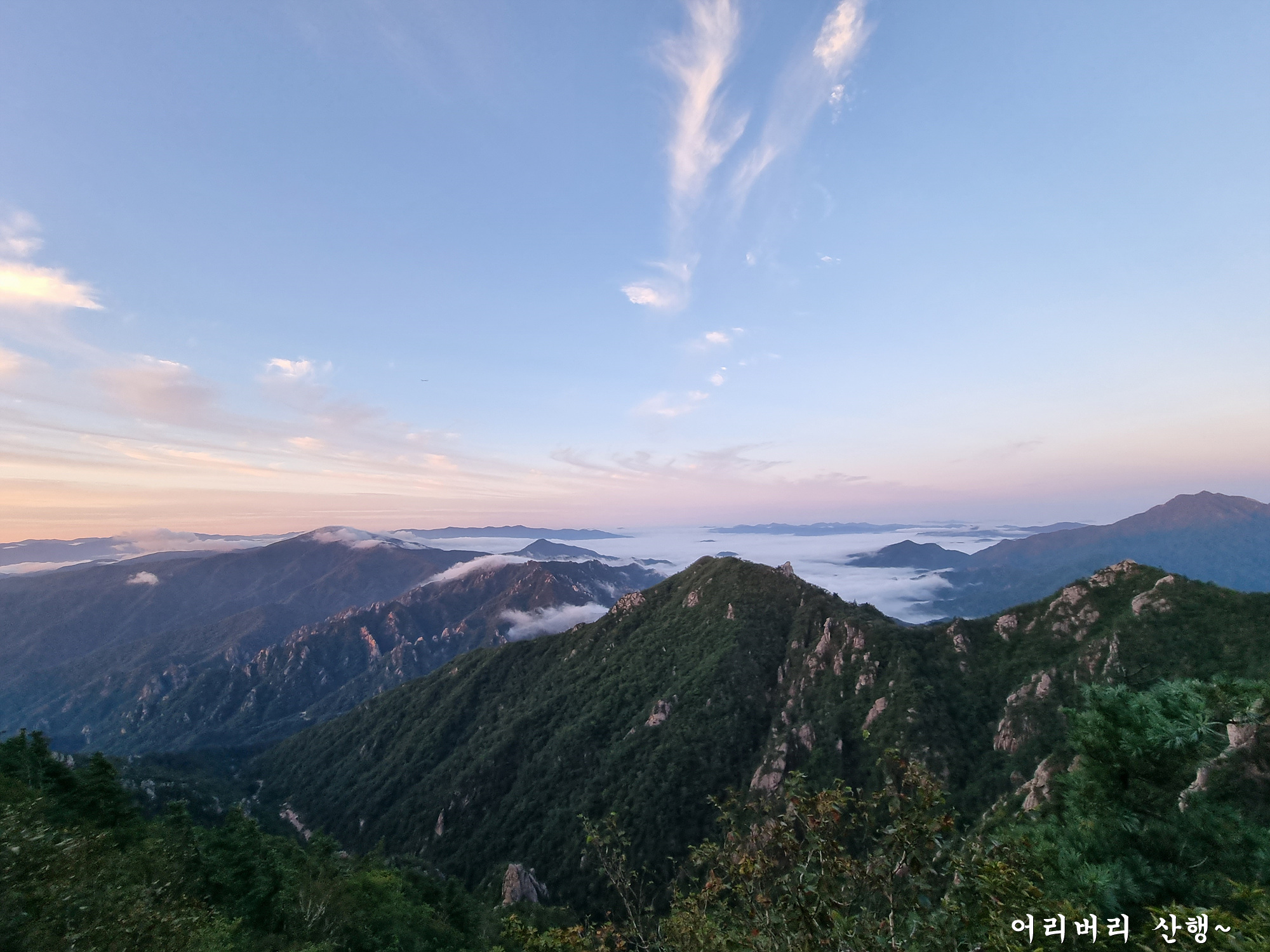 어렴풋하게 보이는 남설악에서 운해가 넘실거리니 기분이 엄청 좋아진다.