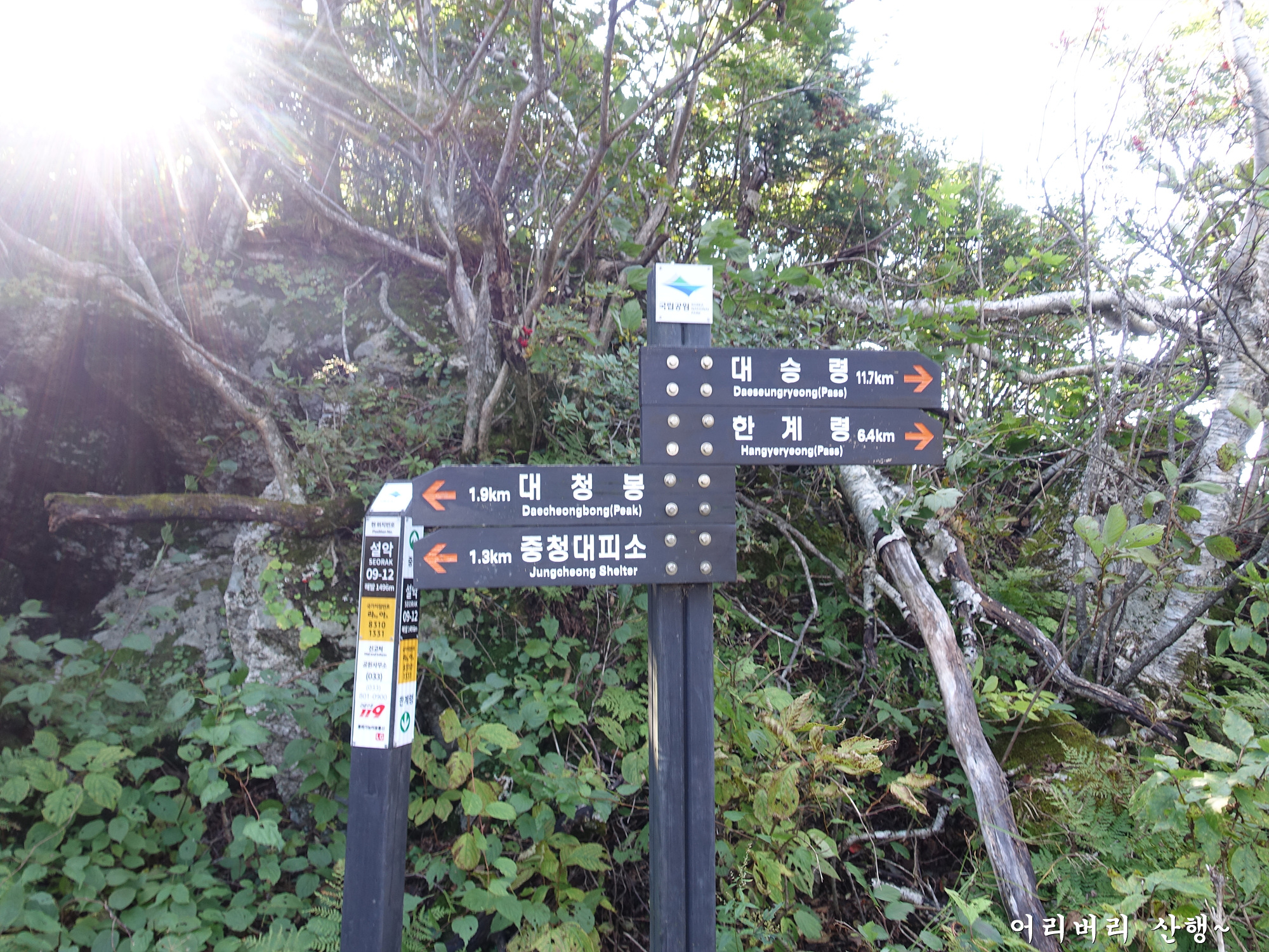대피소는 볼일이 없기에 들리지 않고 10시 10분 소청봉으로 간다.