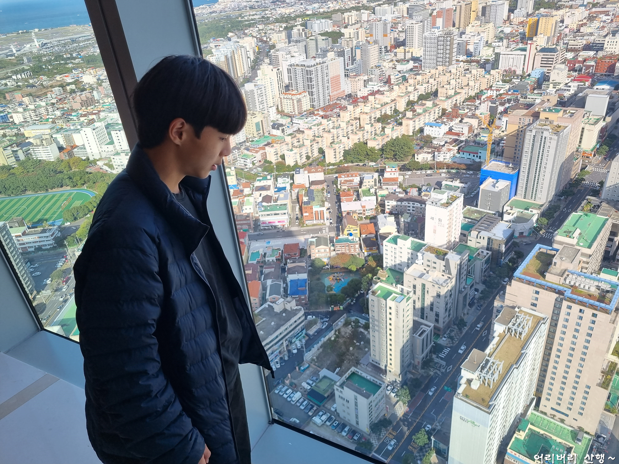 점심식사 후에 소화도 시키고 구경도할겸 38층 전망대에 올라와서 제주의 풍경들을 감상한다.
