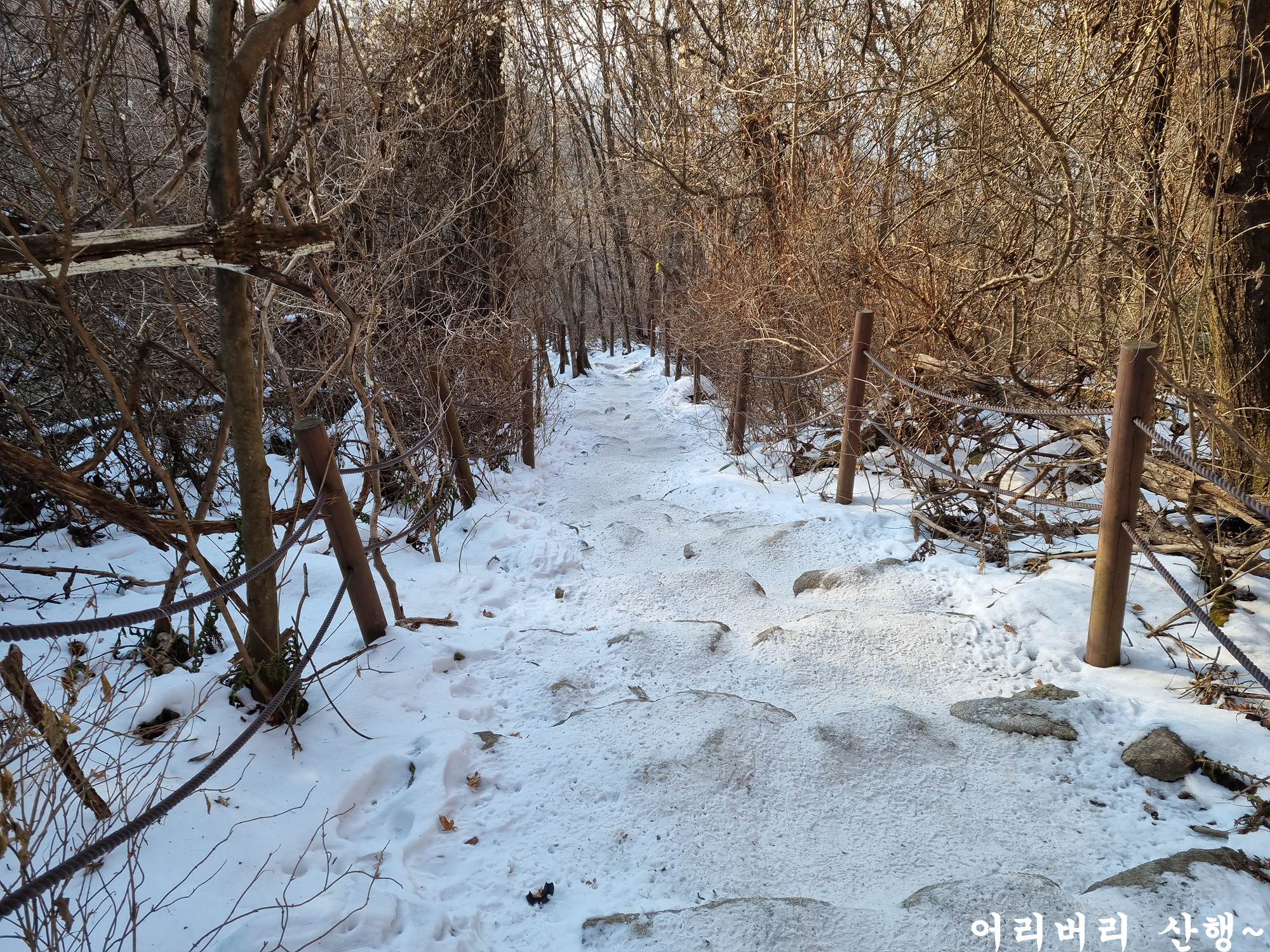 겨울산행의 장점은 멋진 풍경을 보는게 우선이지만 내린눈이 등로를 덮어줘서 길이 평평해지는 잇점이 있으며 눈이