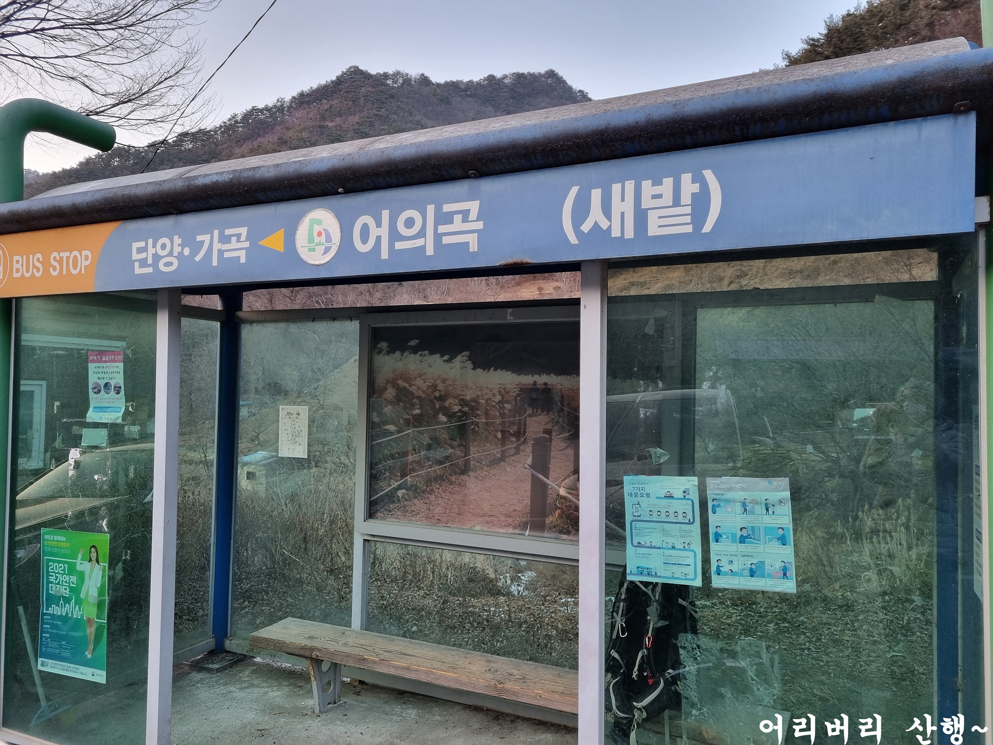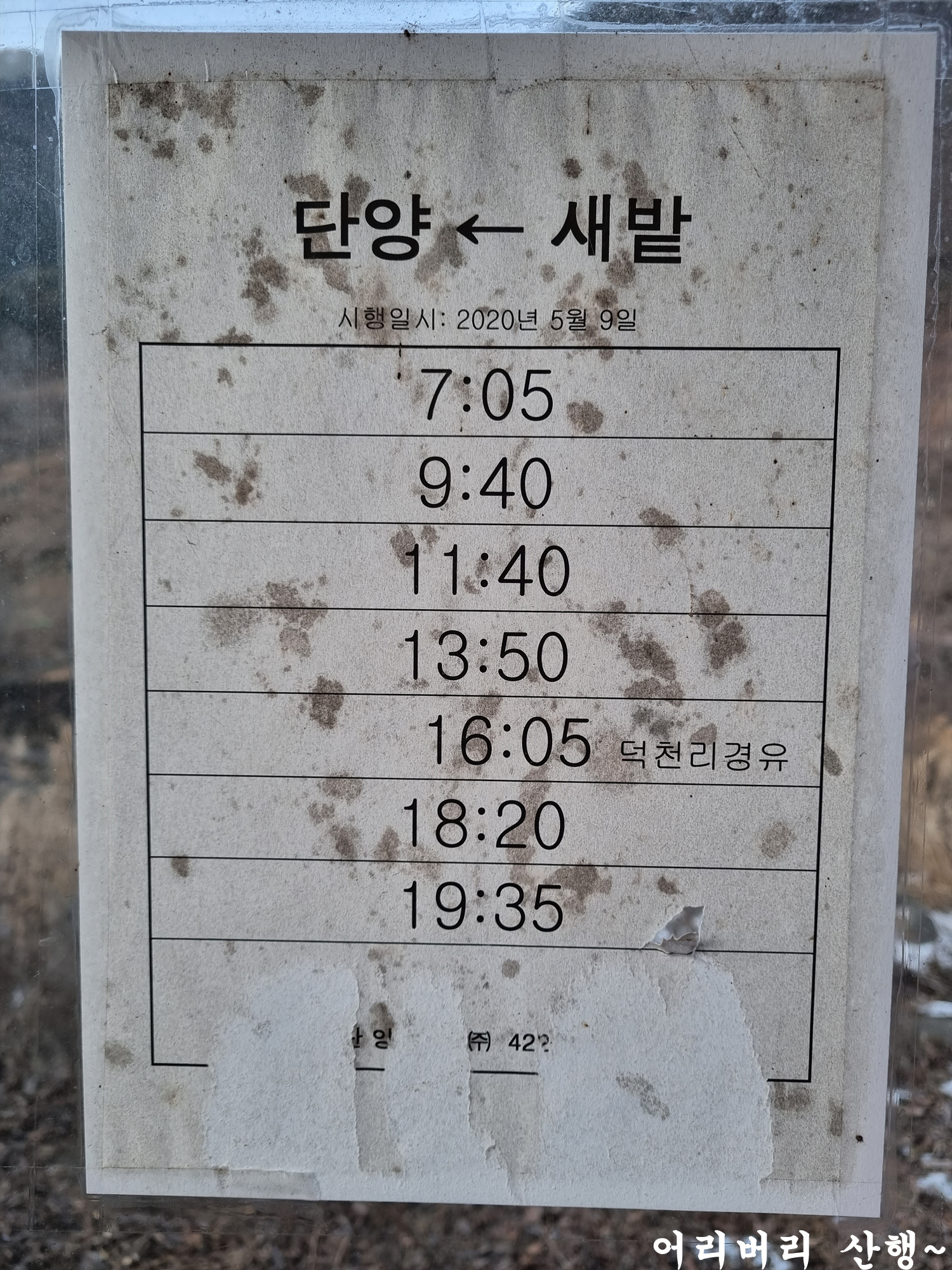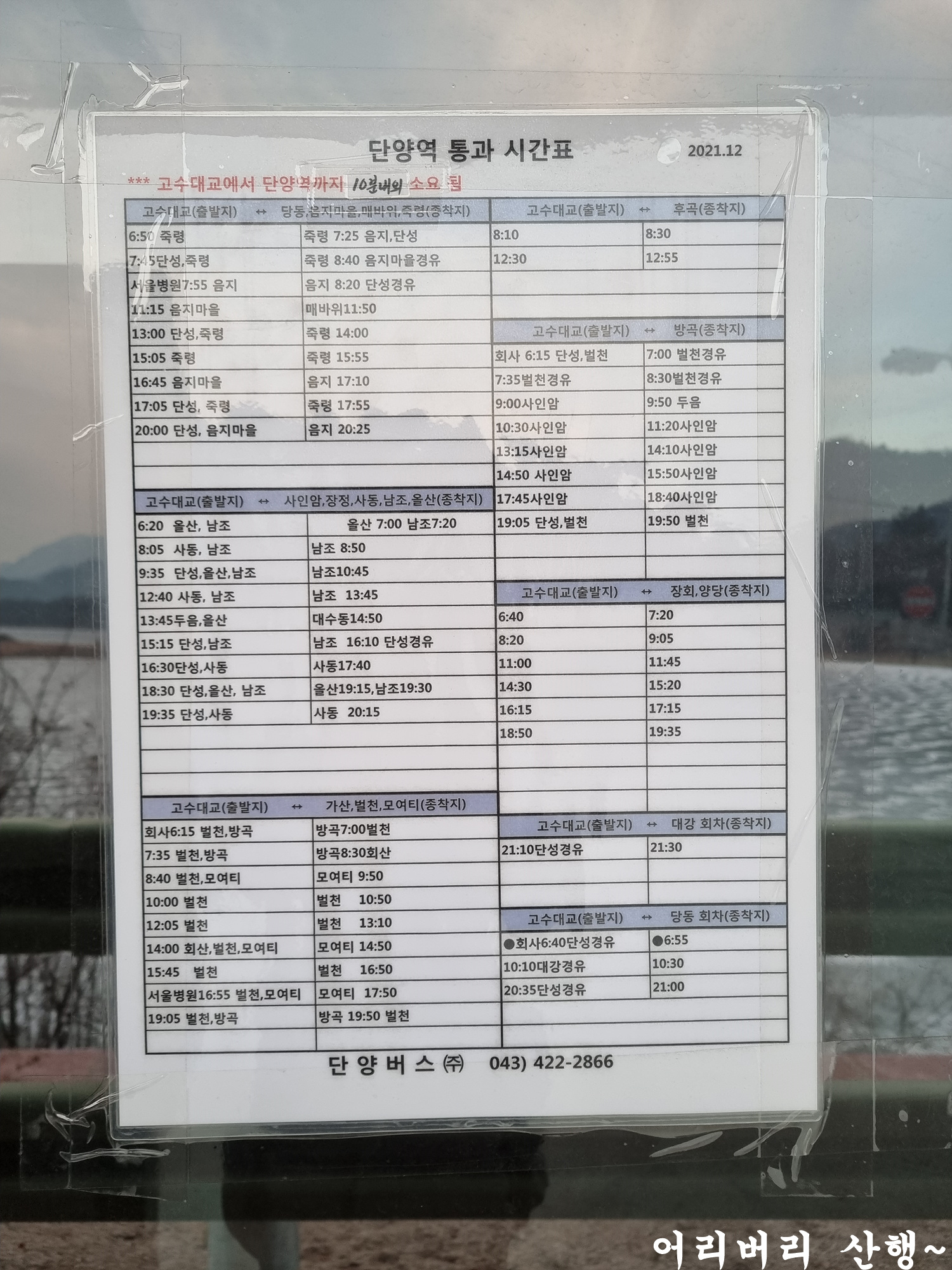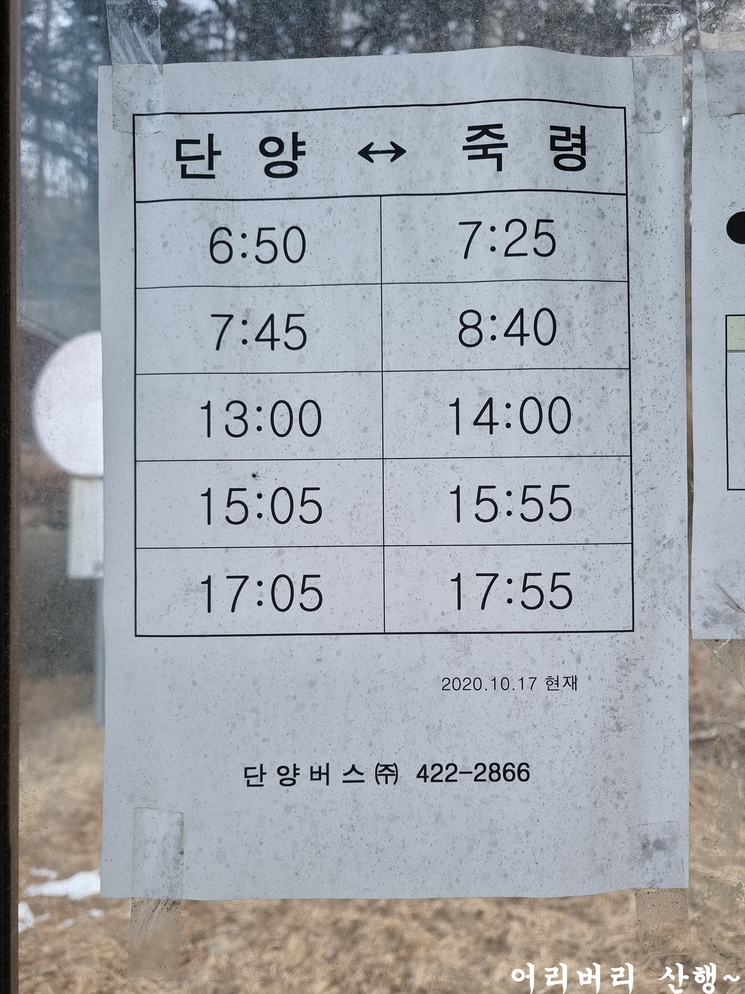 죽령 버스정류장에 있는 버스시간표도 담는다.