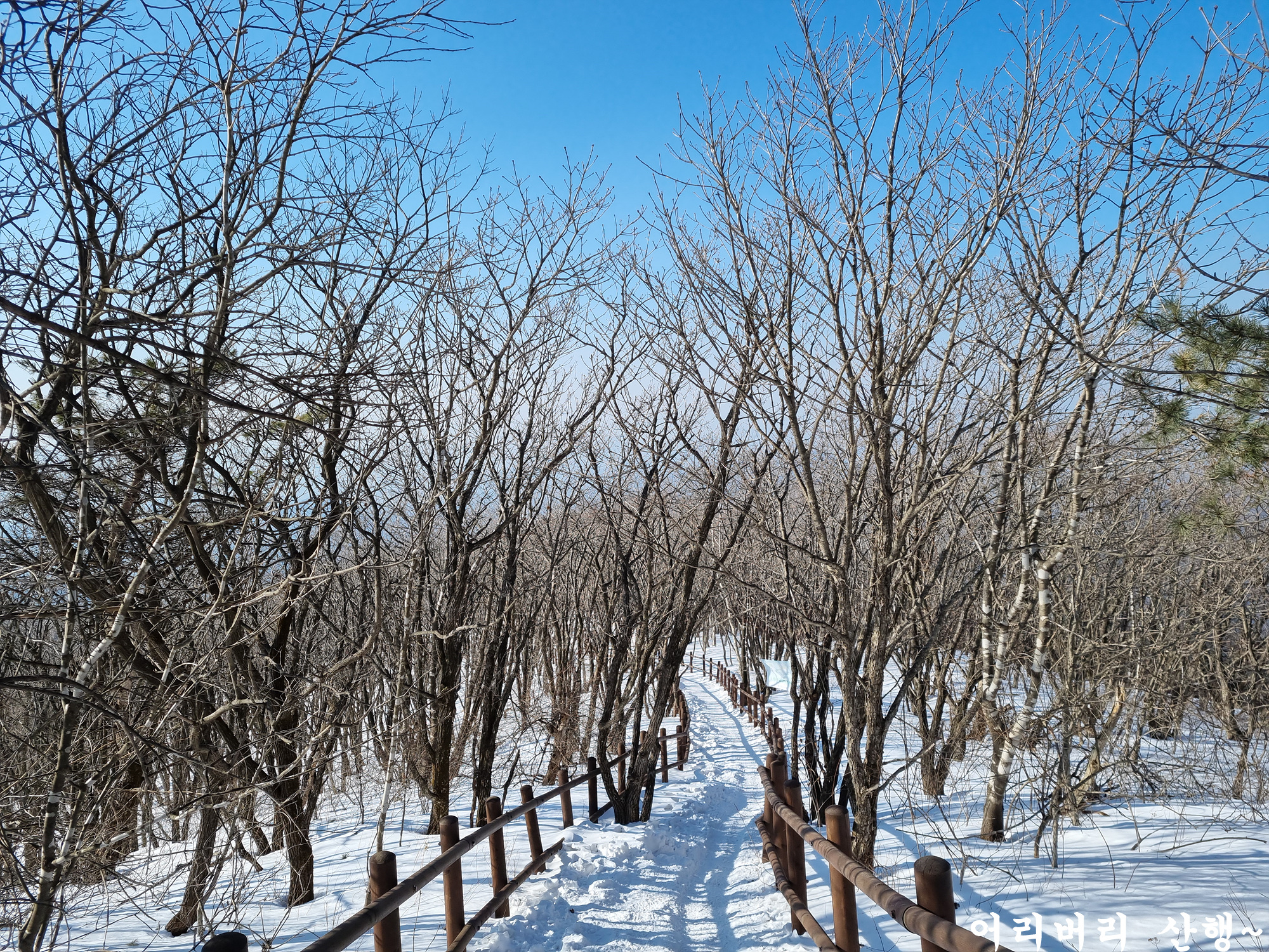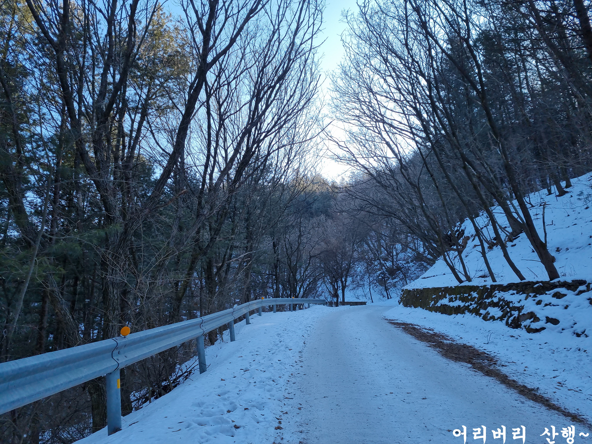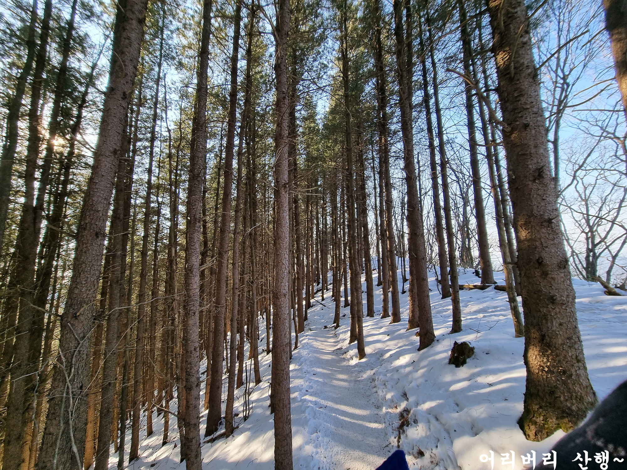 눈이 다져져서 평탄화를 만들어놓았기에 별다른 주의 없이 마냥 걷기만 하면 되고 숲으로 들어오니 바람도 아예 없다.