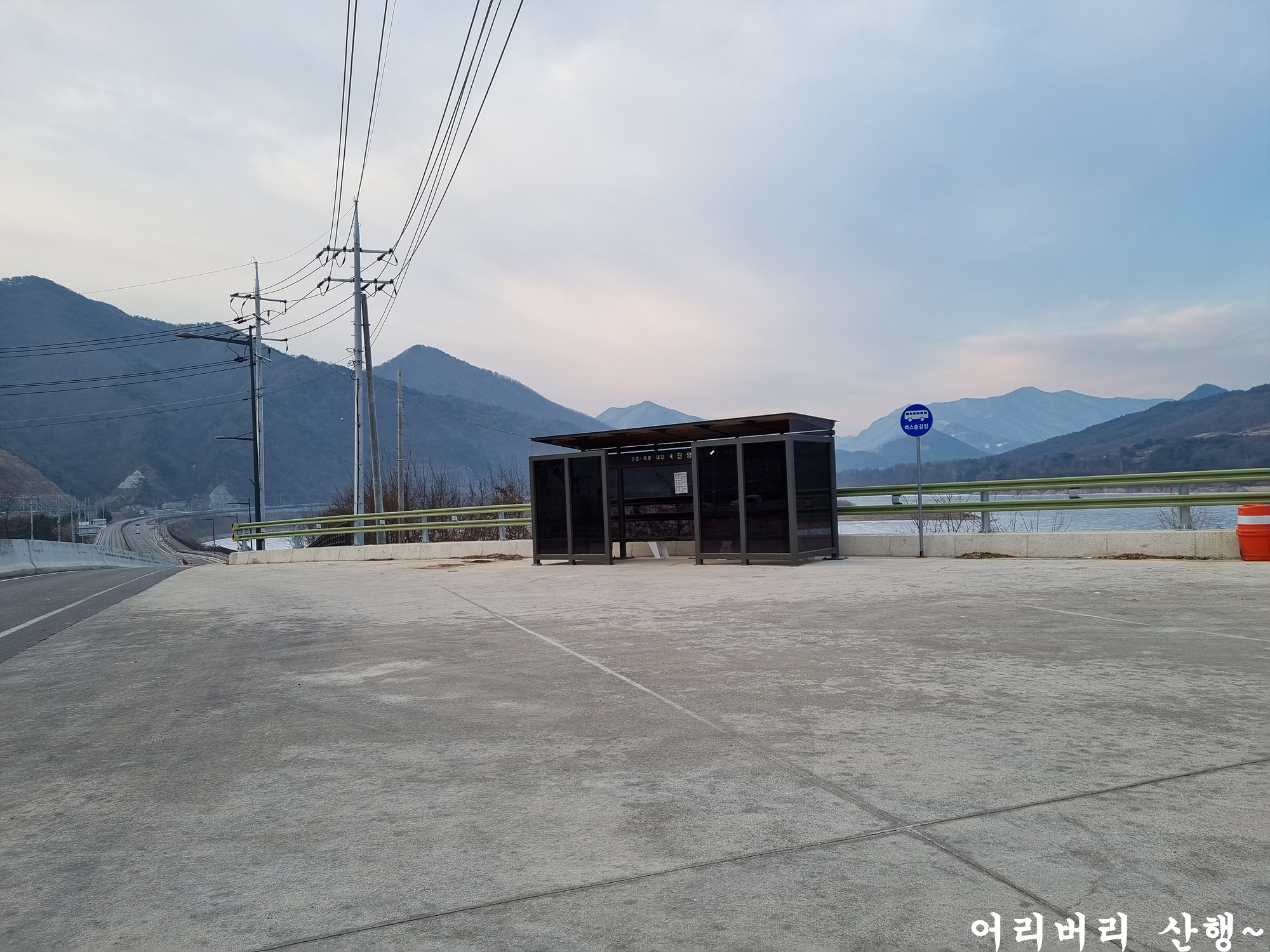 (약 30~50m) 강가에 생뚱맞게 서있는 버스정류장이다...(단양역 맞이방에서도 보이지만 역사 밖으로 나오면 바로 보임)
