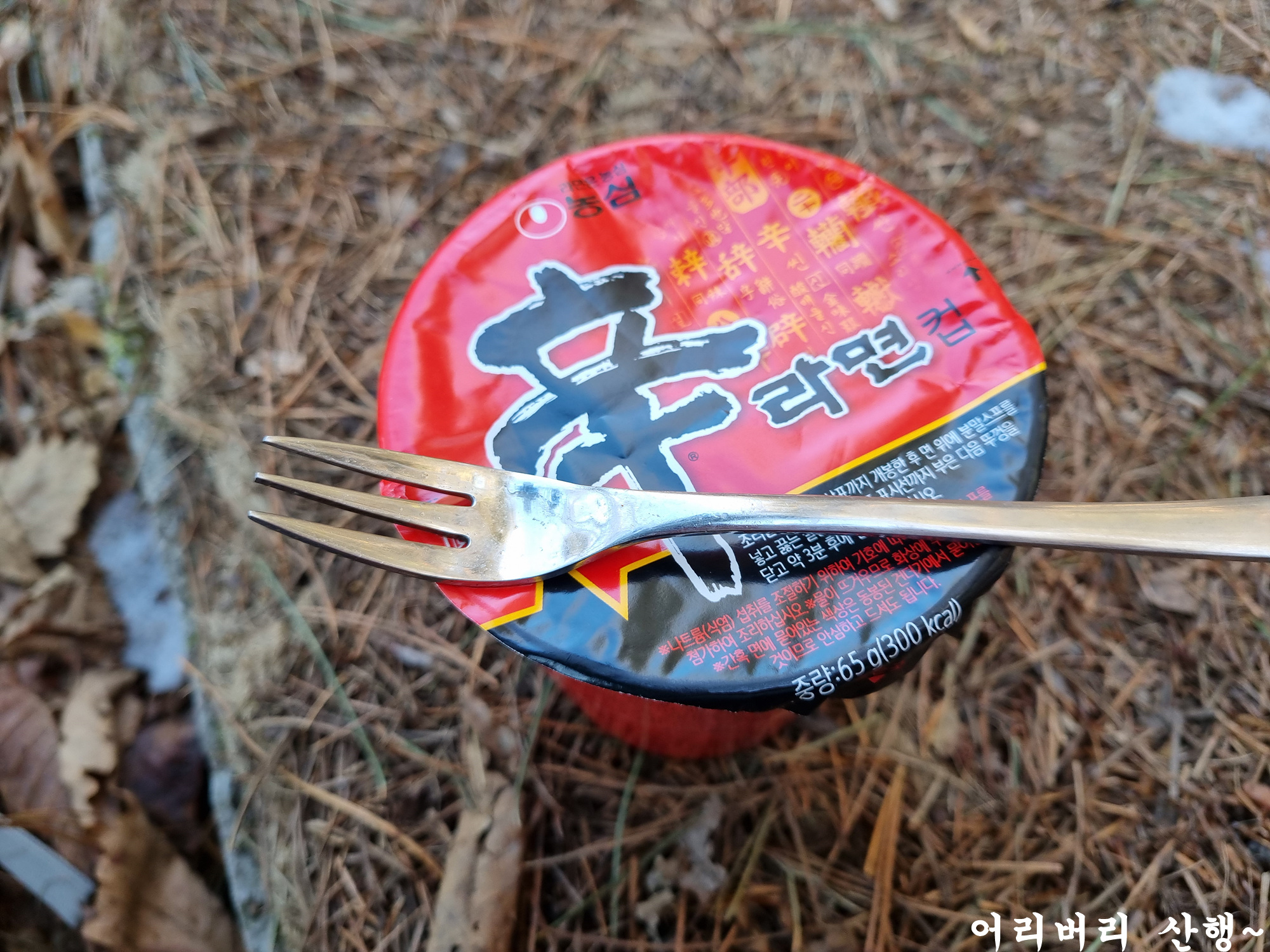 아침을 못 먹었더니 쪼끔 걷다가 배고파서 기력이 막 딸리기에 길가 나무 아래 앉아서 컵라면으로 요기를...