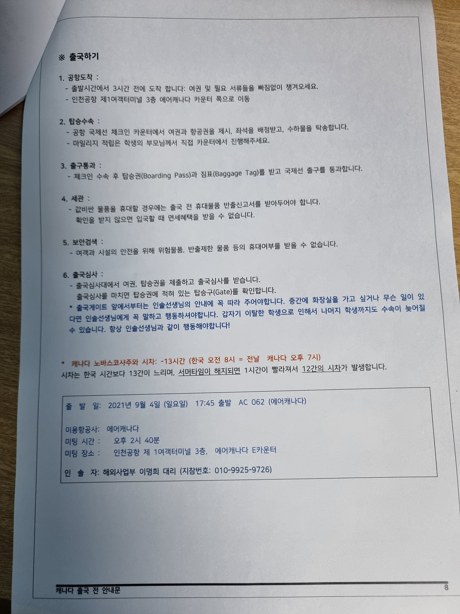 함께 출국하는 아이들을 인천공항에서 처음 만낫고 벤쿠버 공항에서 1차로 헤어지고