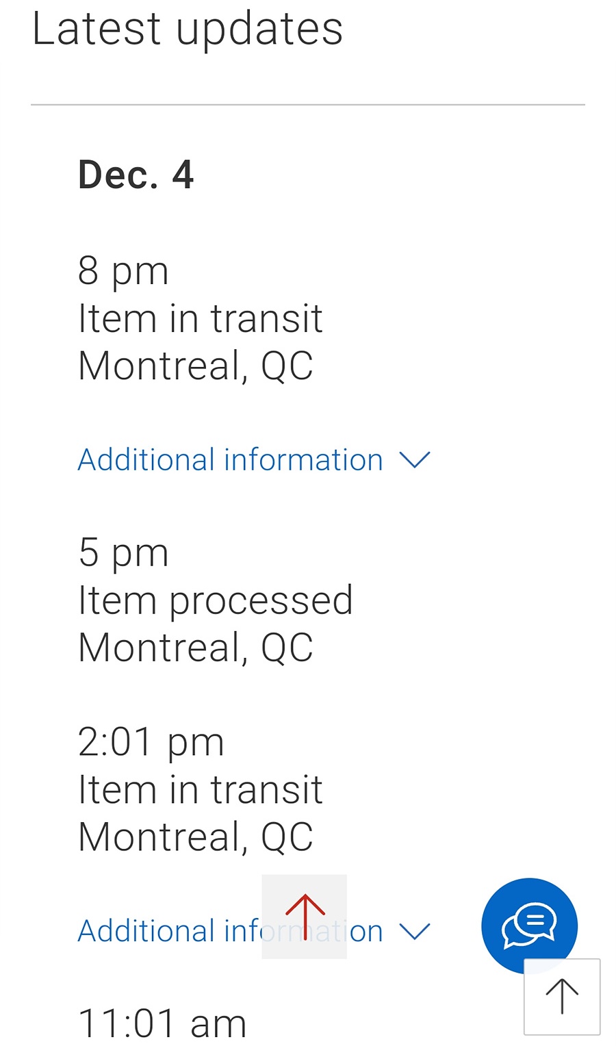 그리고 아래쪽으로 검색을 하면 12월 4일 몬트리올에서 처리 중이며