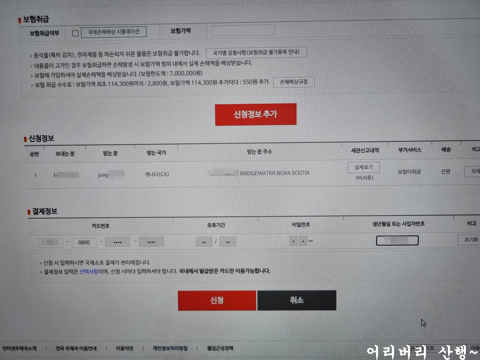 모든 확인 절차가 끝나면 결제하는 것으로 배송접수가 완료된다.