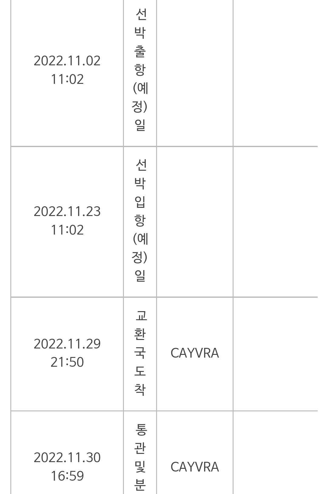 선박 도착까지는 조회가 되는데 통관하는 시간인지는 모르겠지만 또 며칠 동안 먹통 조회가 지속되더니