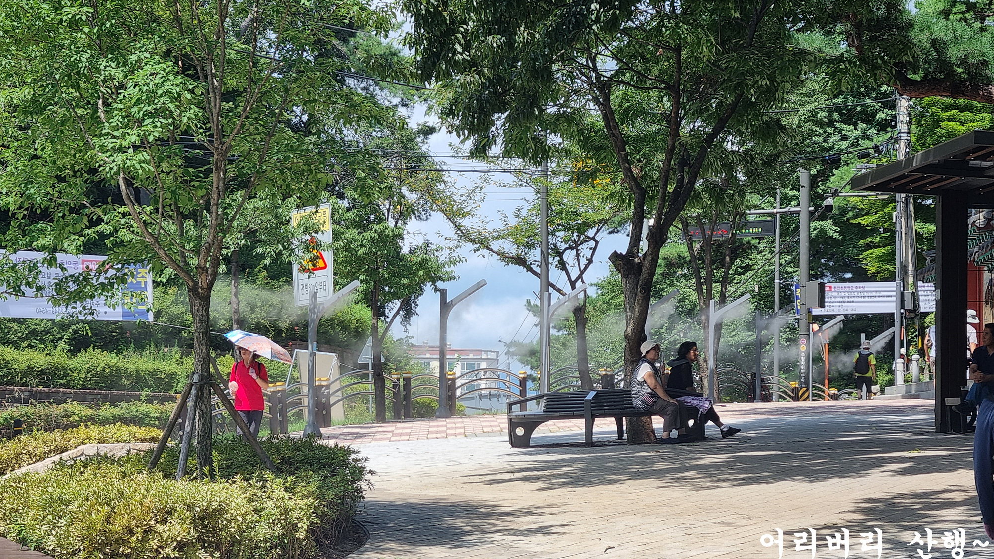 샤워분수를 만들어서 물을 뿌려주니 시원하긴 하네