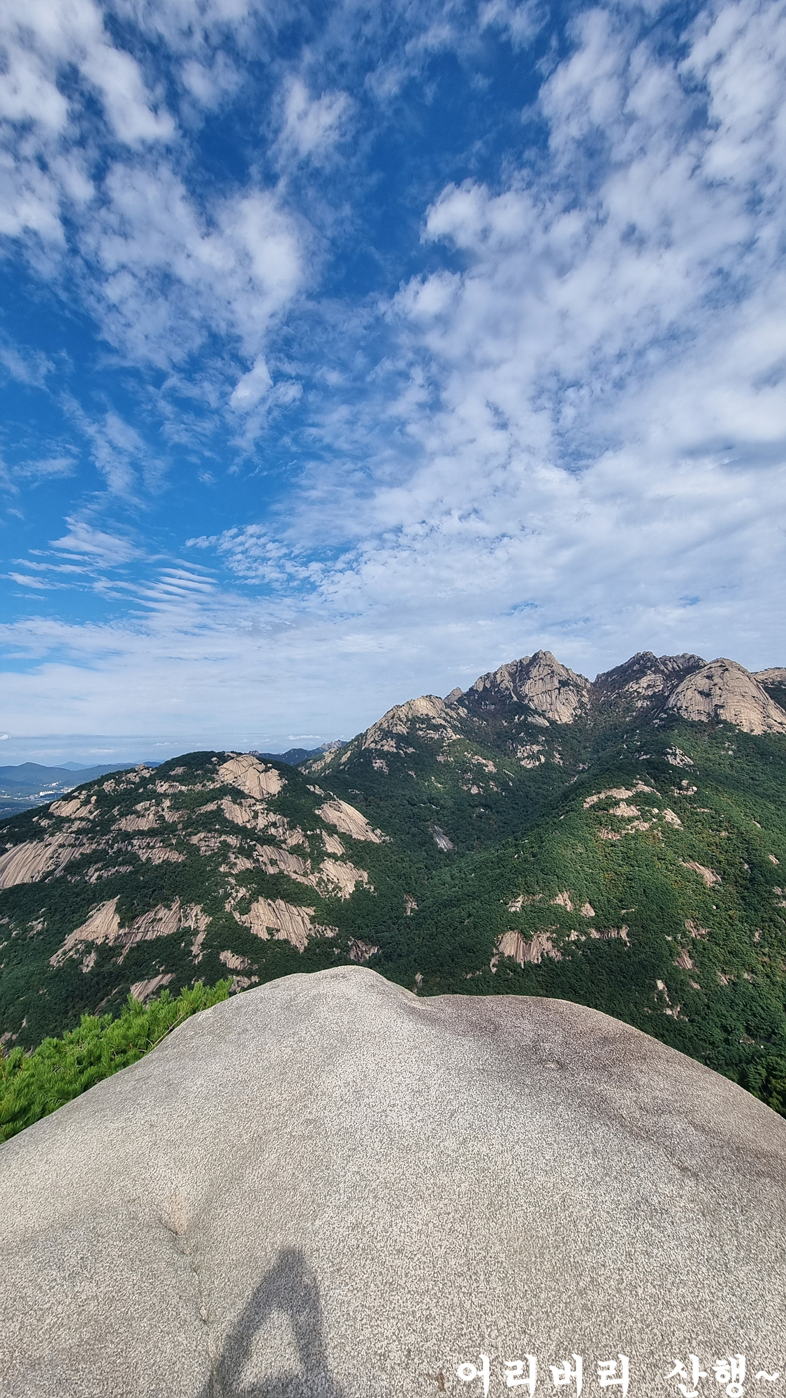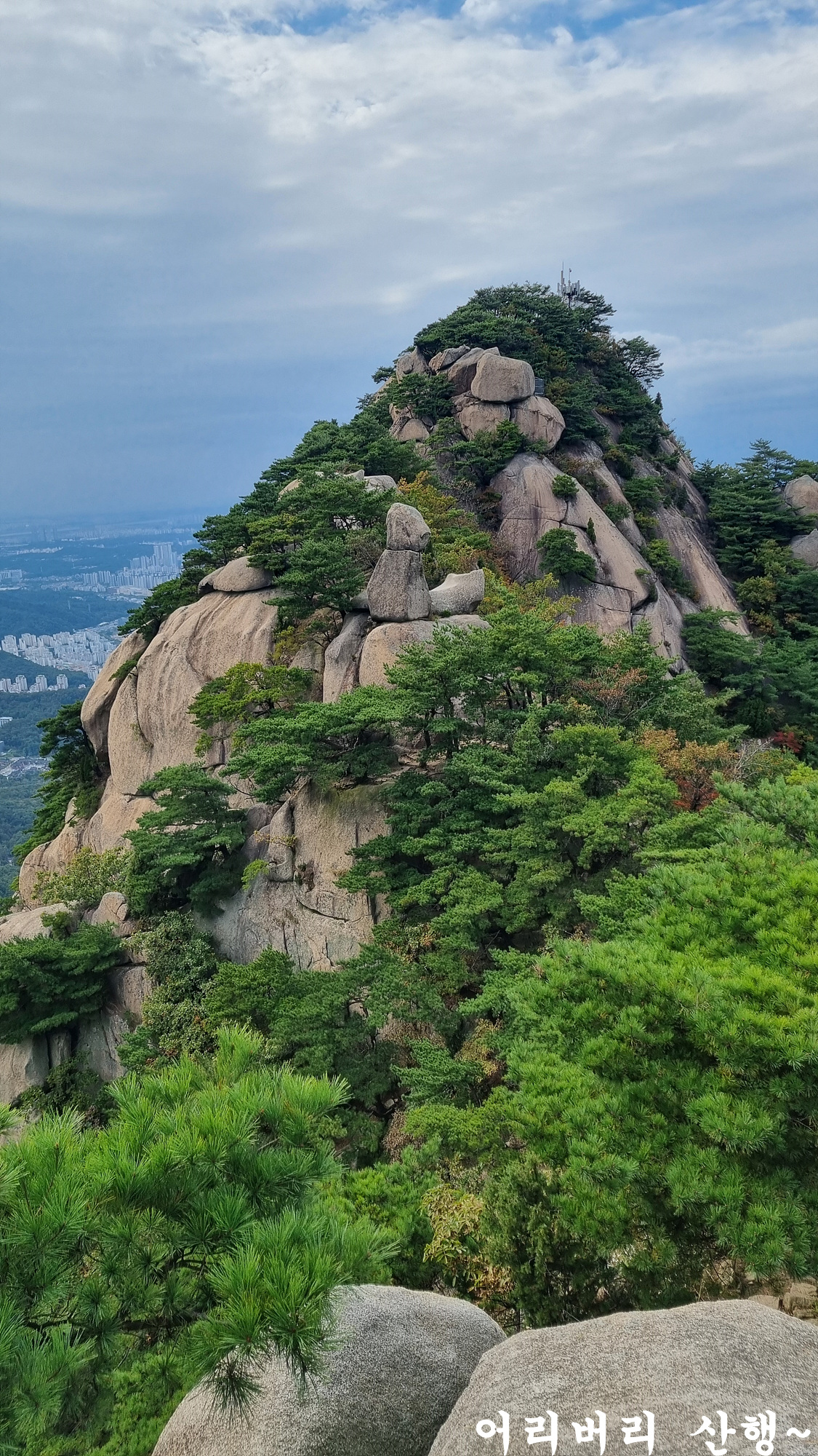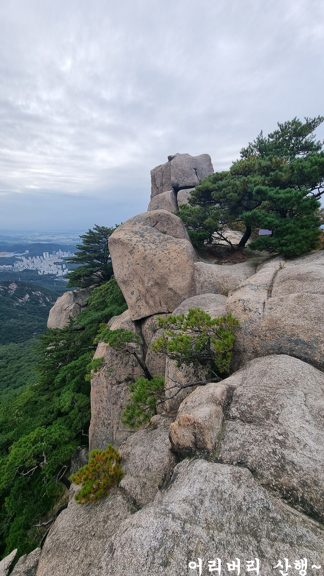 사모바위, 비봉, 관봉, 향로봉이 줄을 이어 서있고 웨딩바위도 존재감을 확실하게 보여준다.