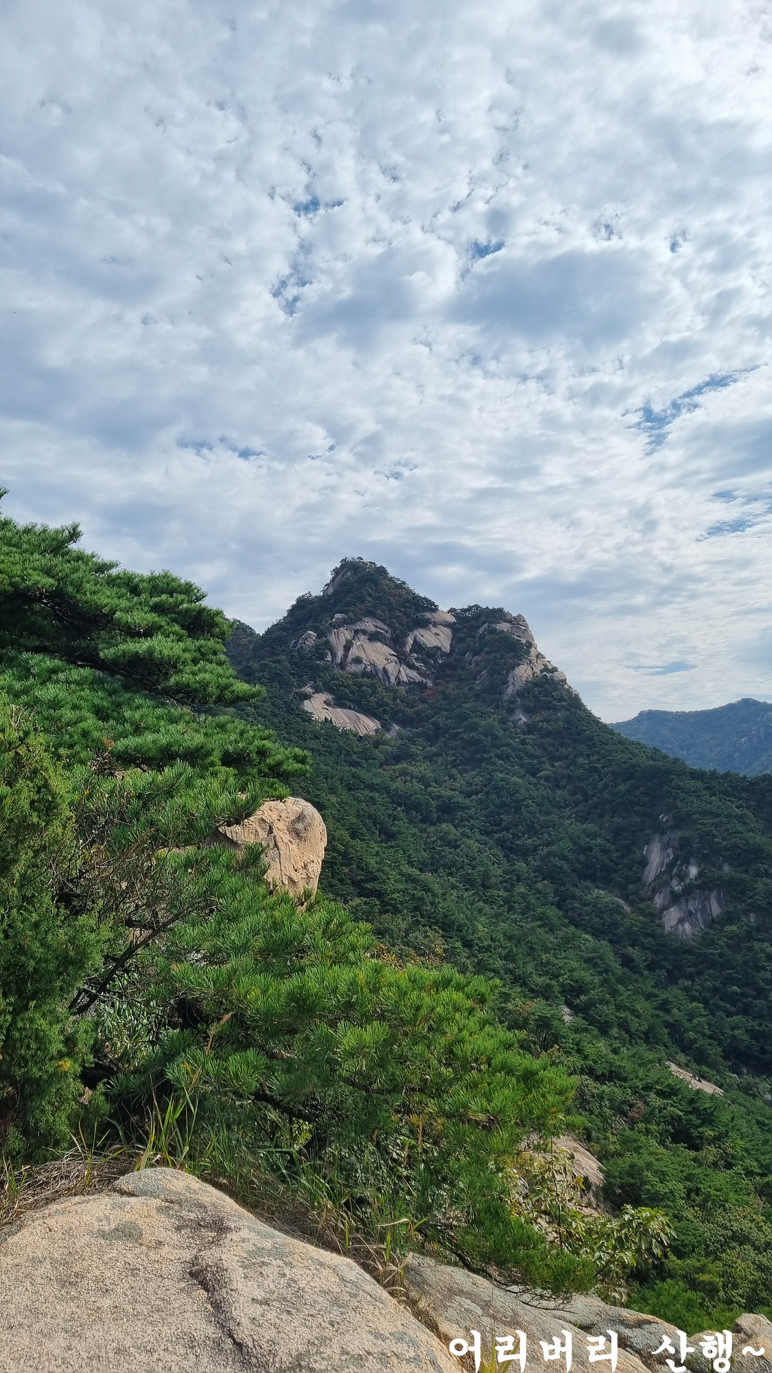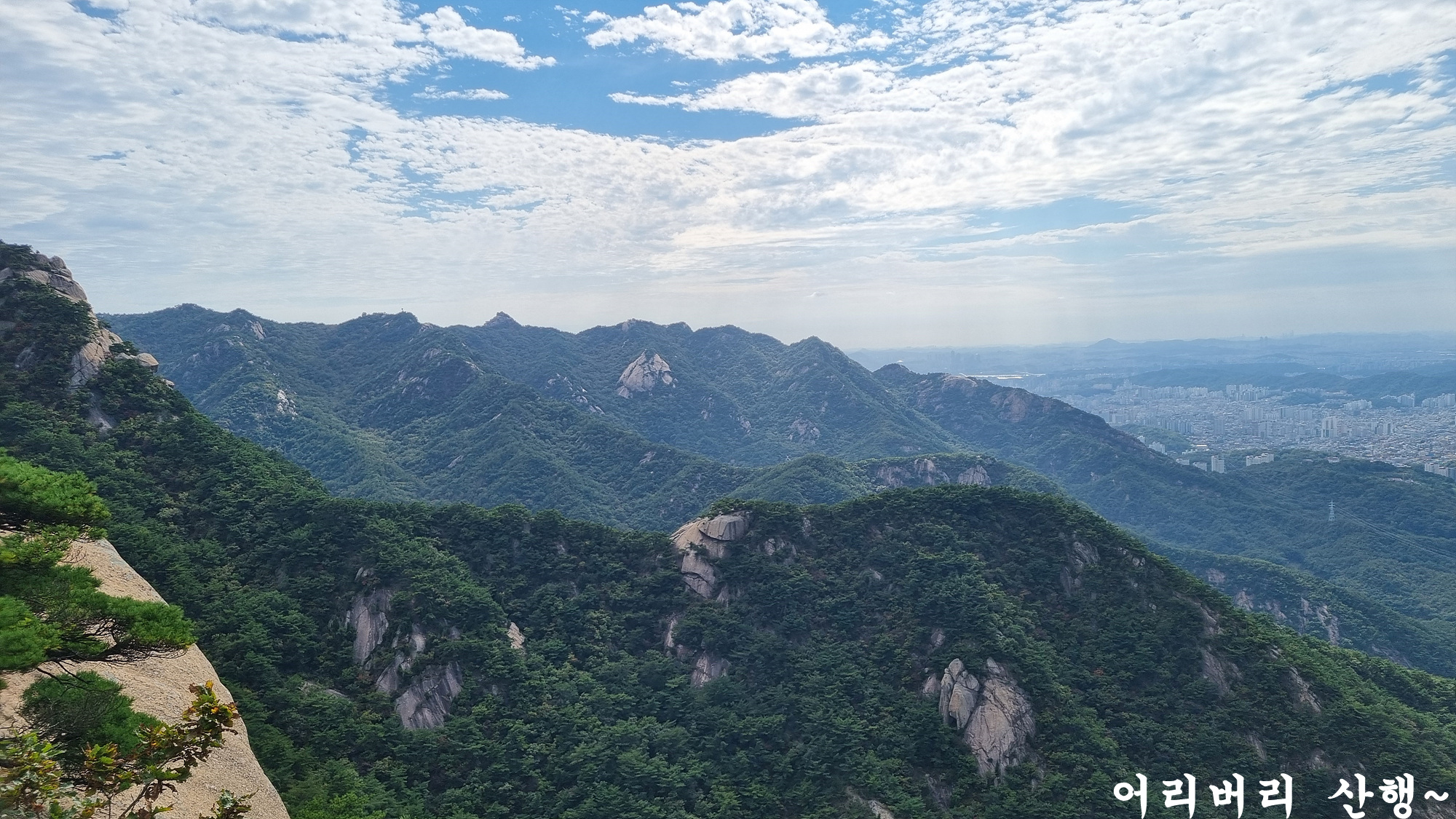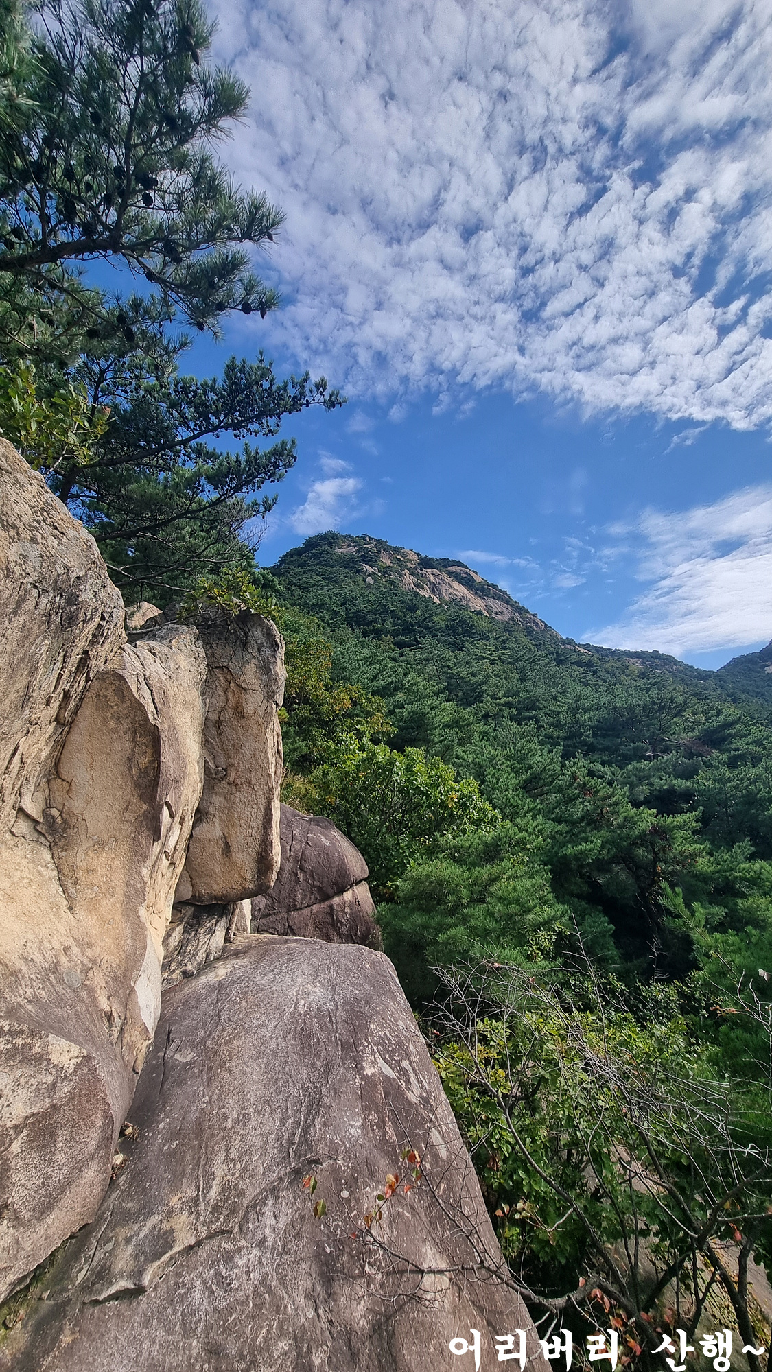사모바위, 비봉, 관봉, 향로봉이 줄을 이어 서있고 웨딩바위도 존재감을 확실하게 보여준다.