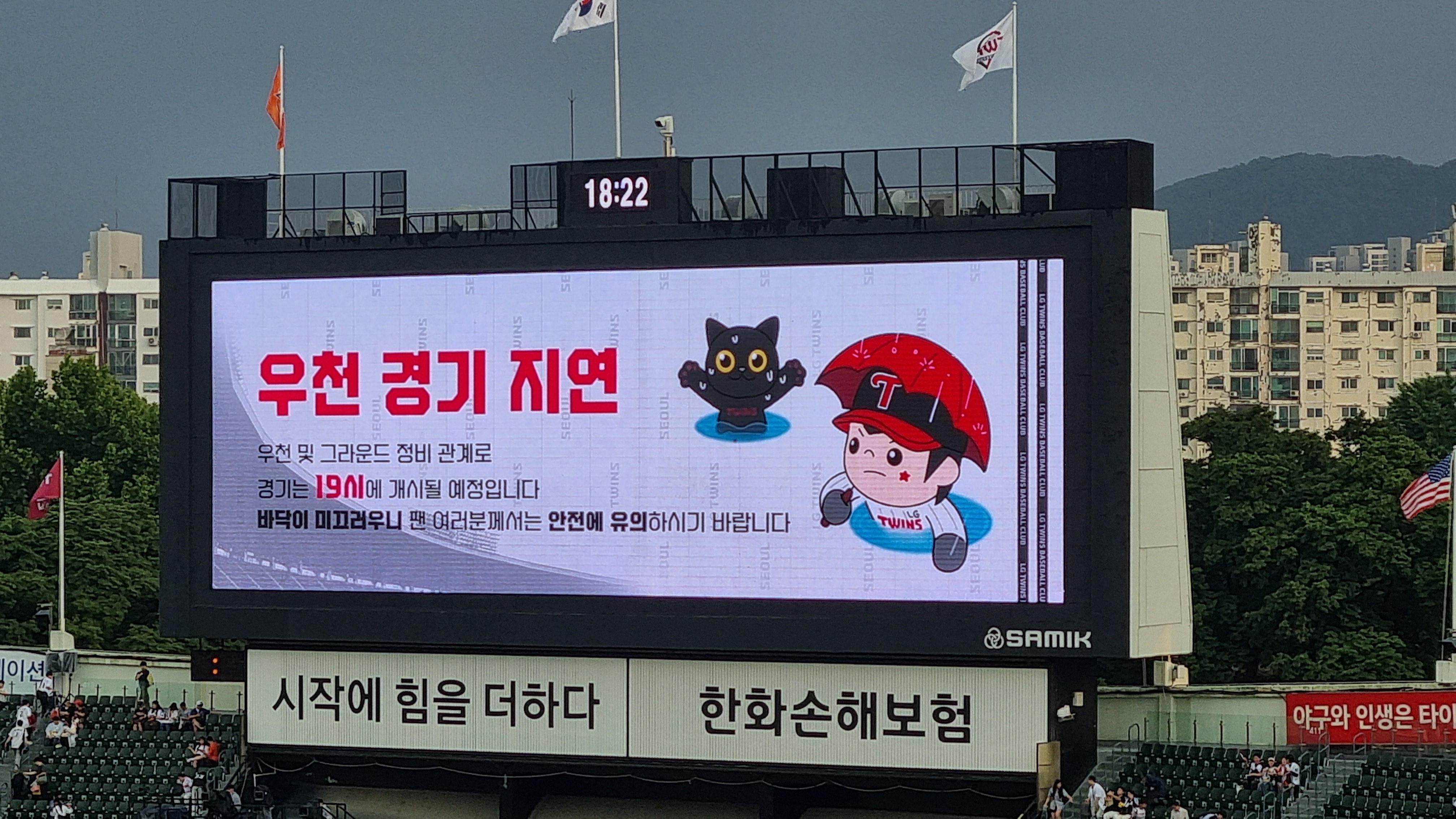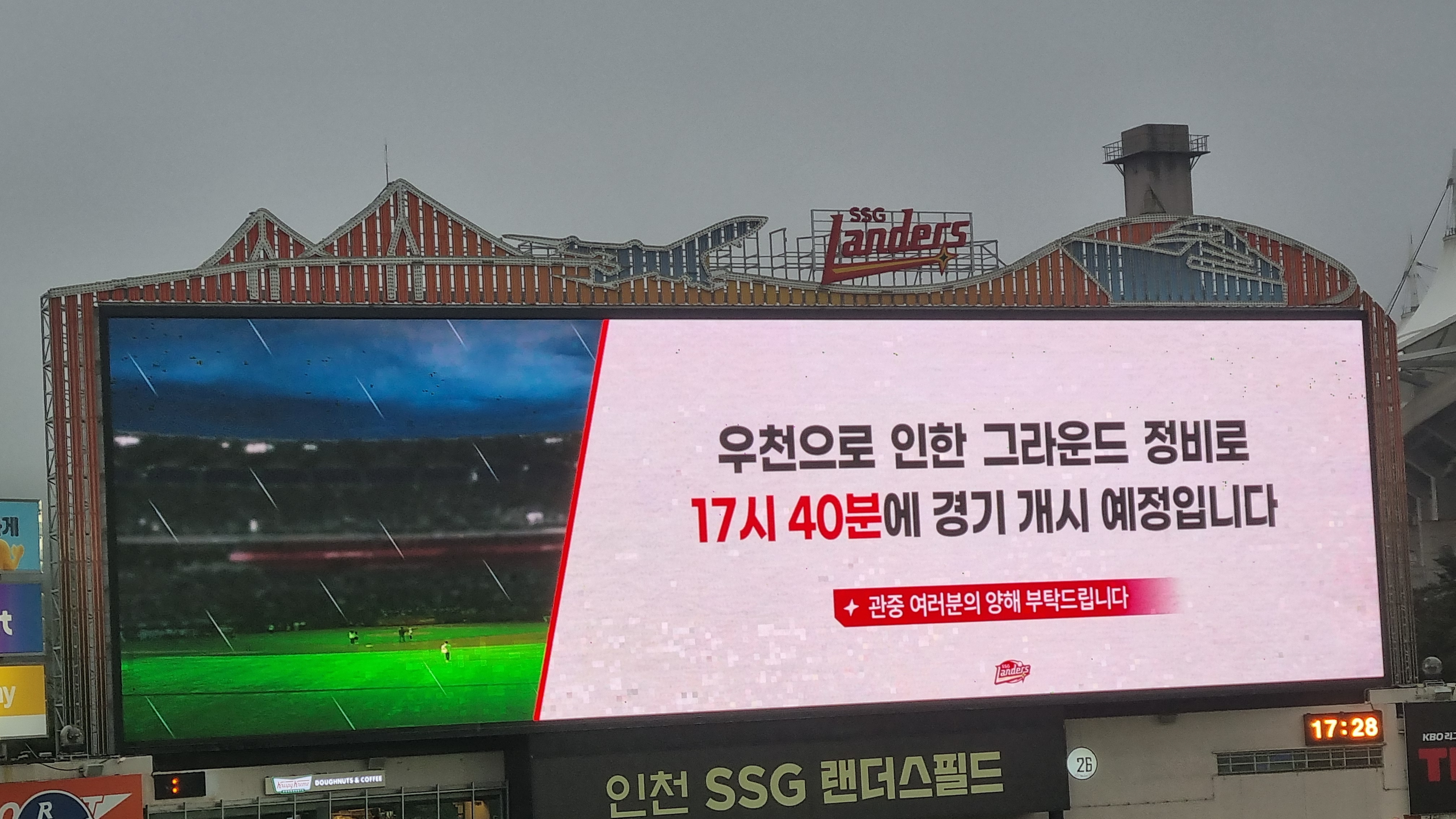 이날도 비가 와서 우천지연으로 7시에 경기시작