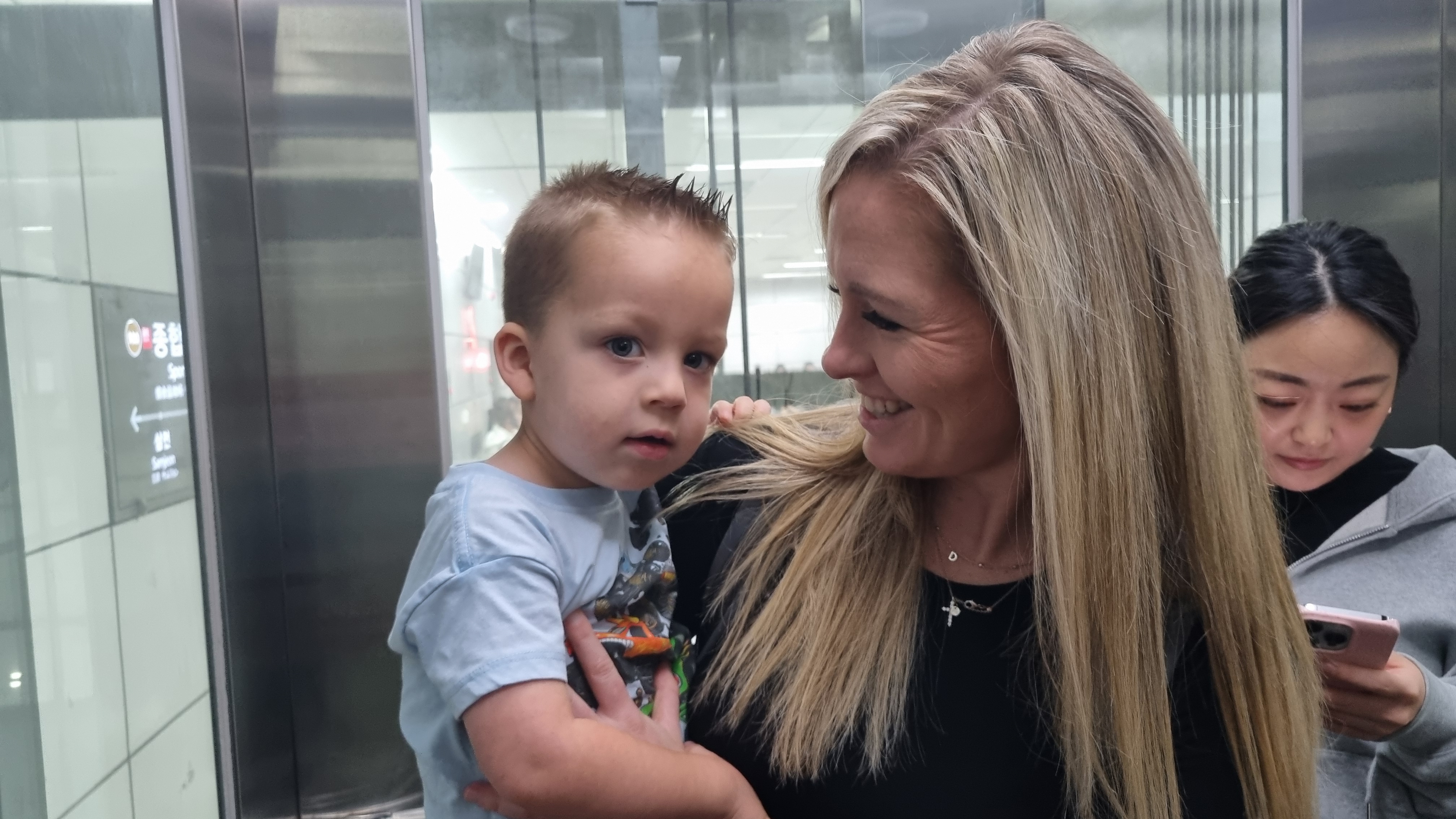 직관 가는 길에 전철역에서 같은 엘베를 타게 된 오스틴선수가 가족... 양해를 구하고