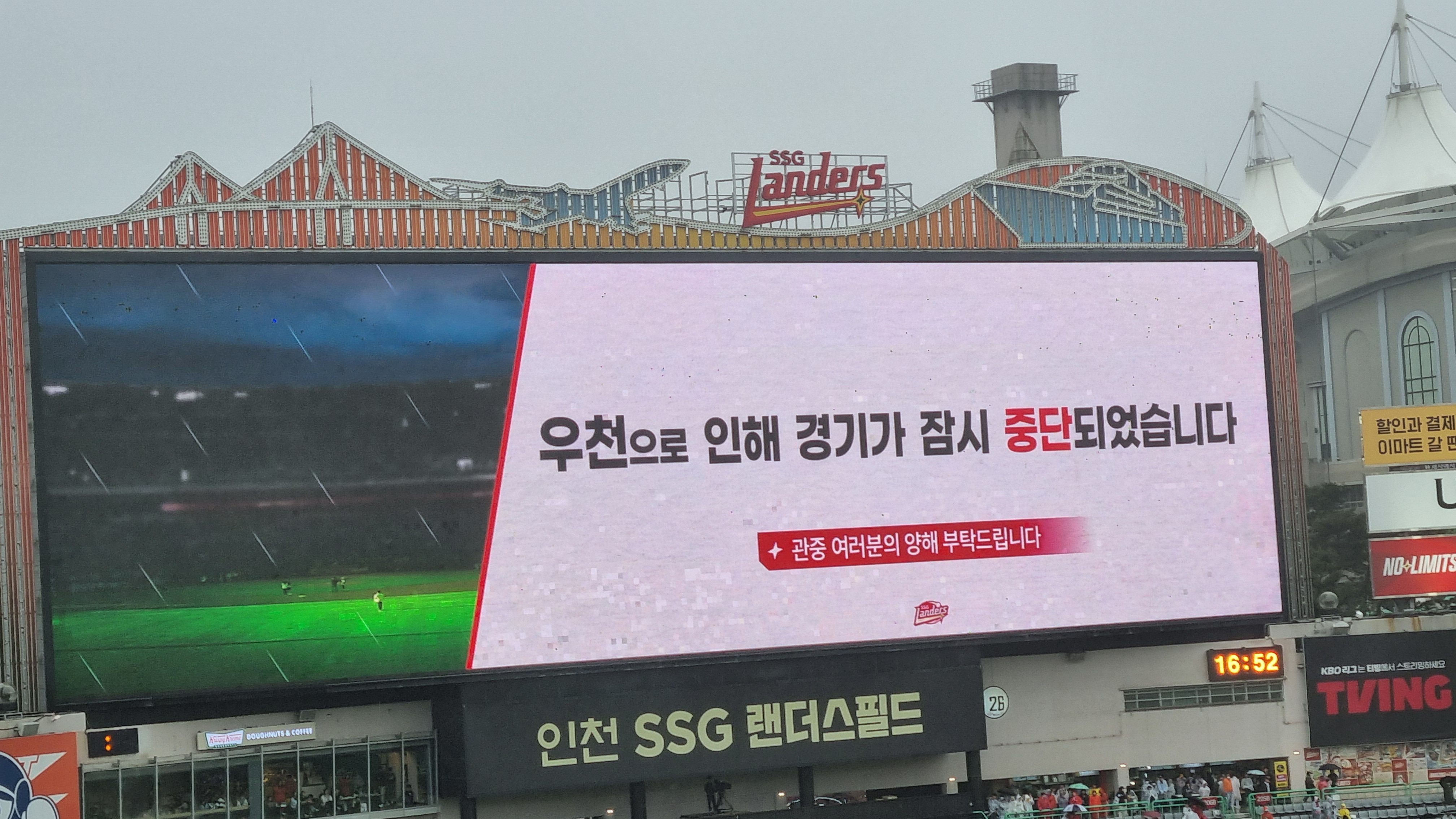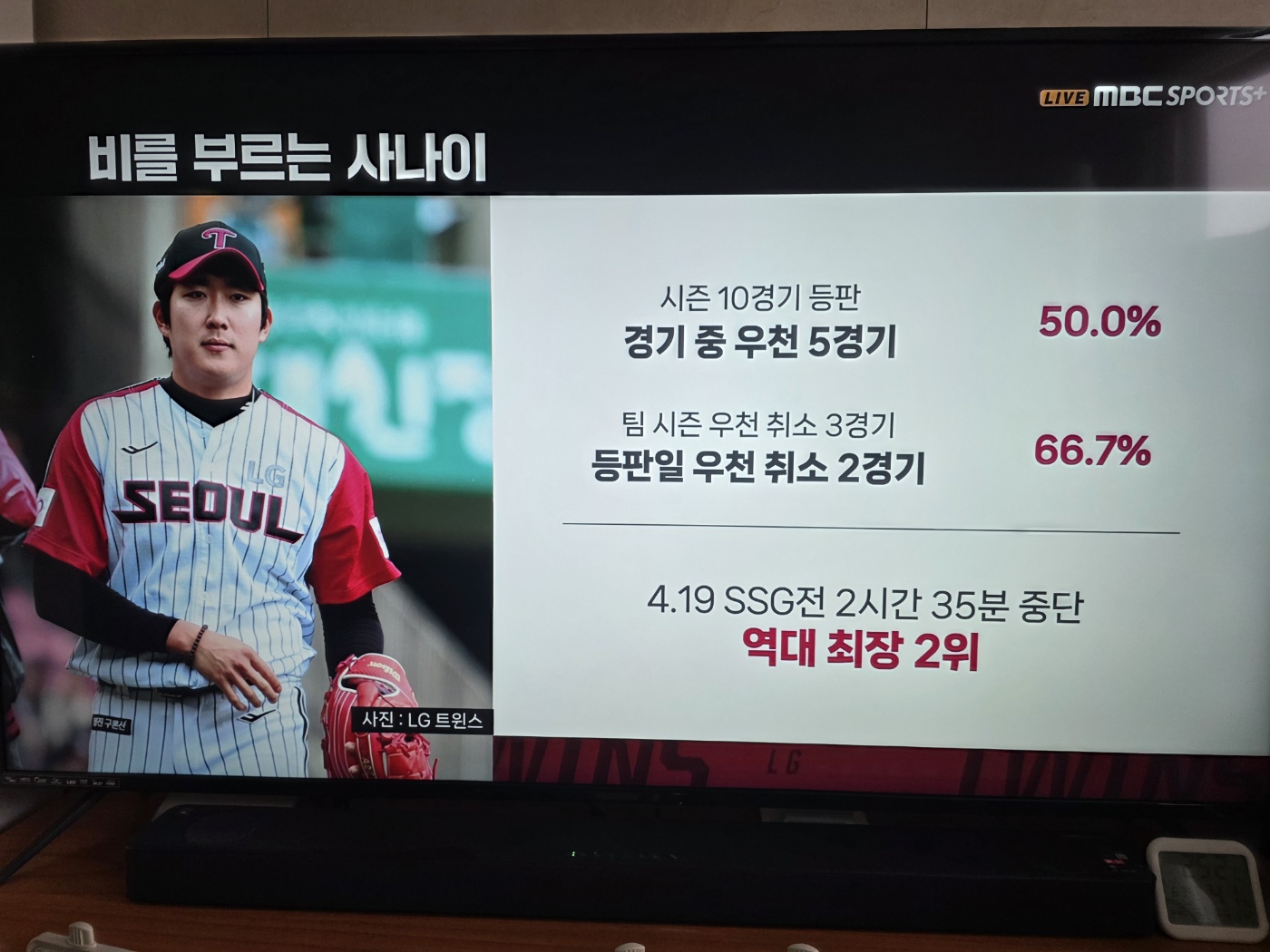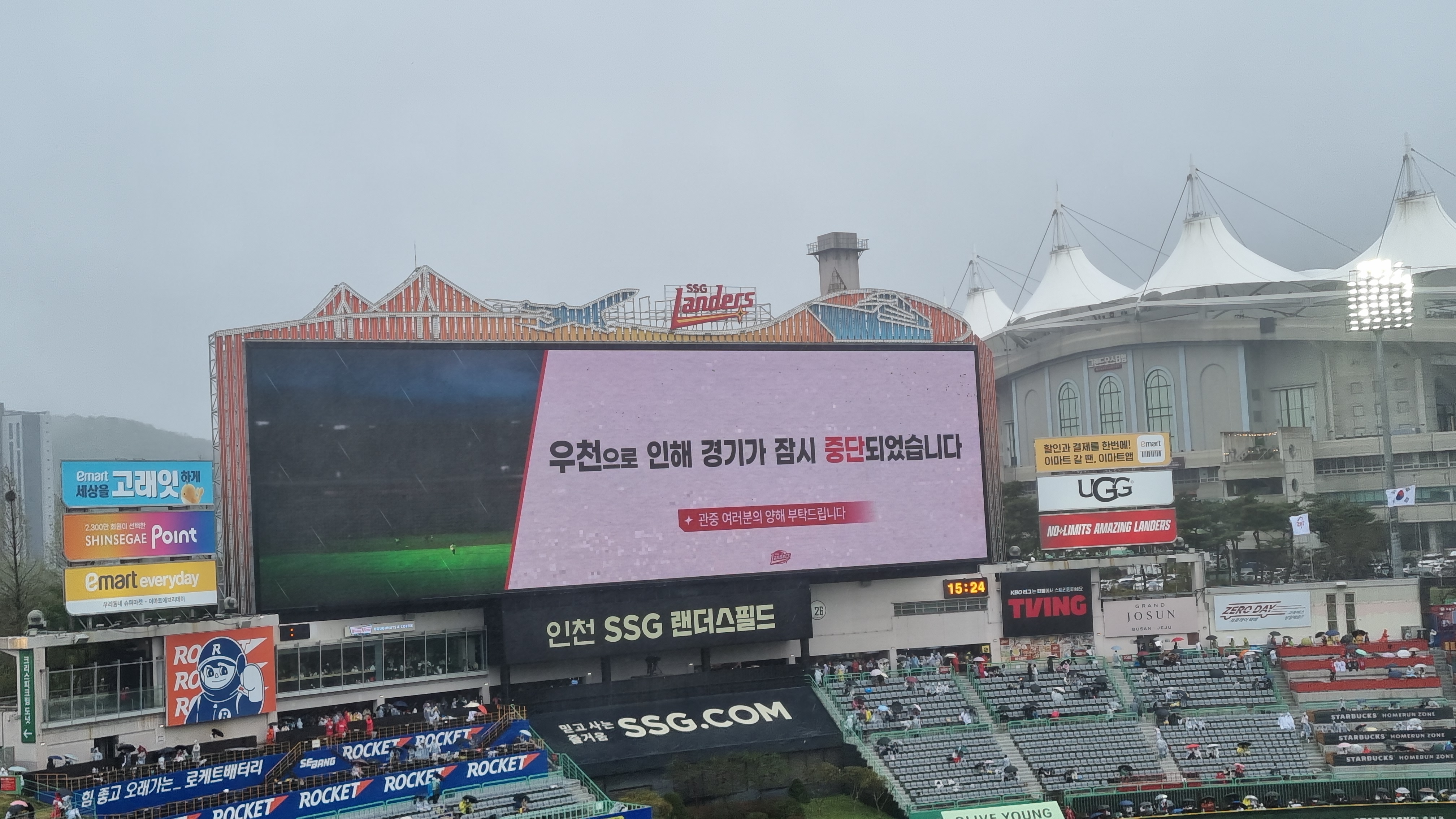 4회 초 하다 말고 우천으로 3시 20분경 다시 중단됐고