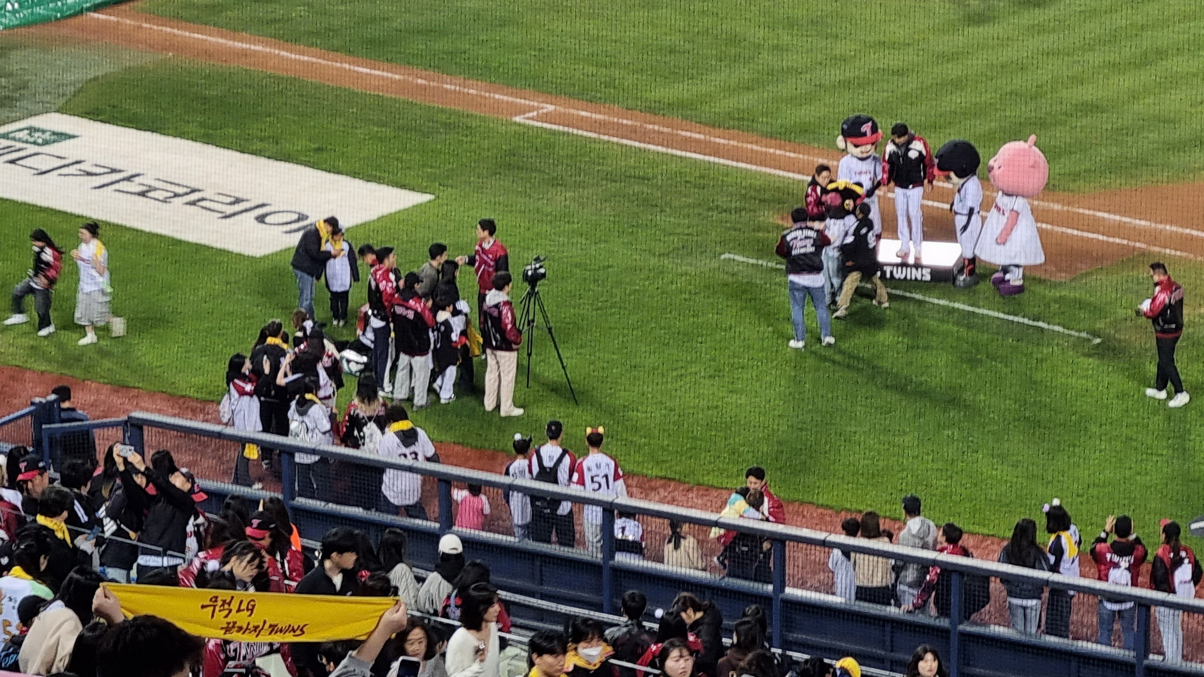 득점에 기여한 문성주선수 인터뷰 후에 완봉 투수 임찬규선수 인터뷰는 길~~ 게 했다.ㅎ