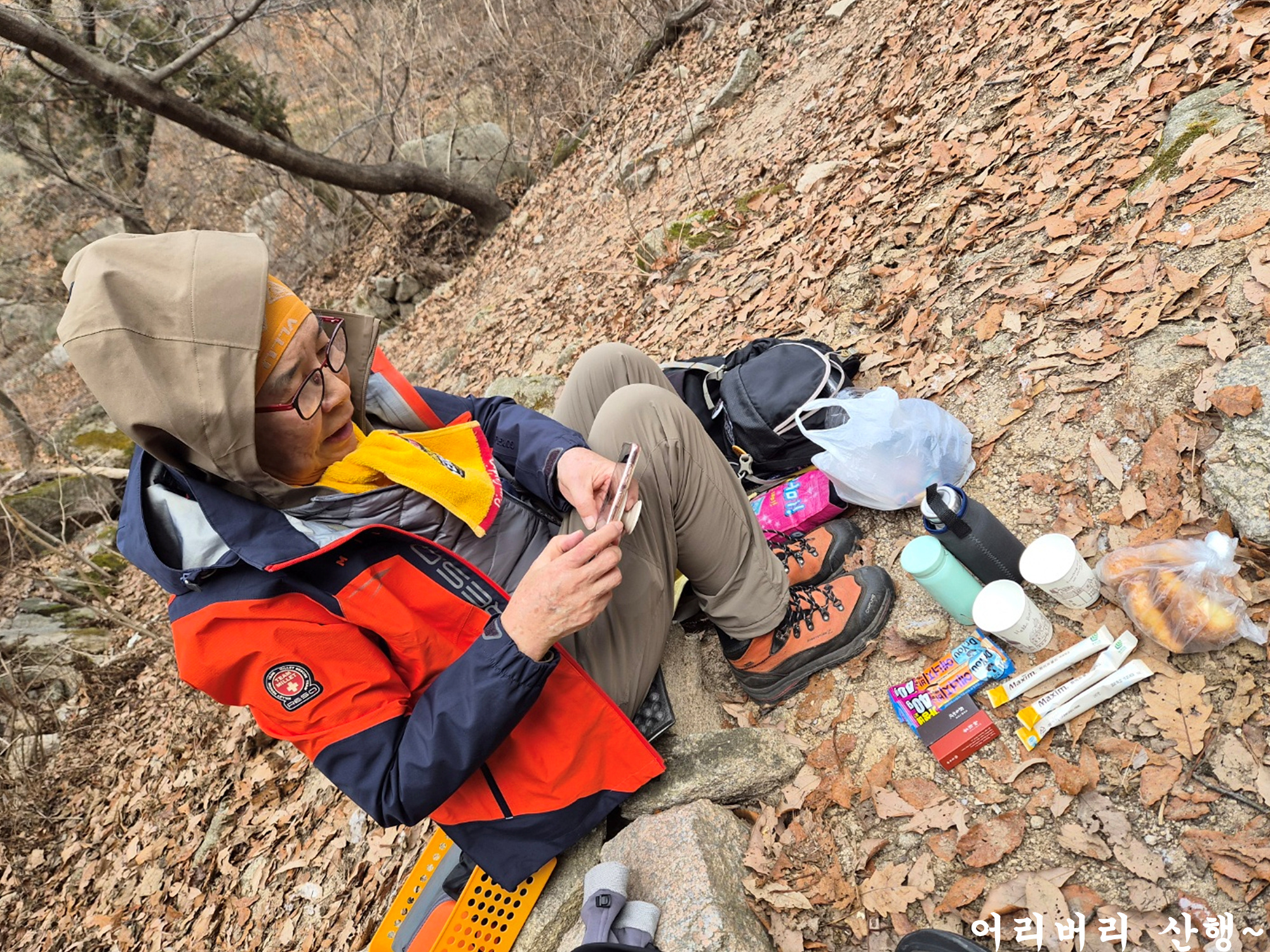 나만의 명당에 가서 나머지 간식을 먹으면서 쉬고 2시 20분경부터 하산이다.