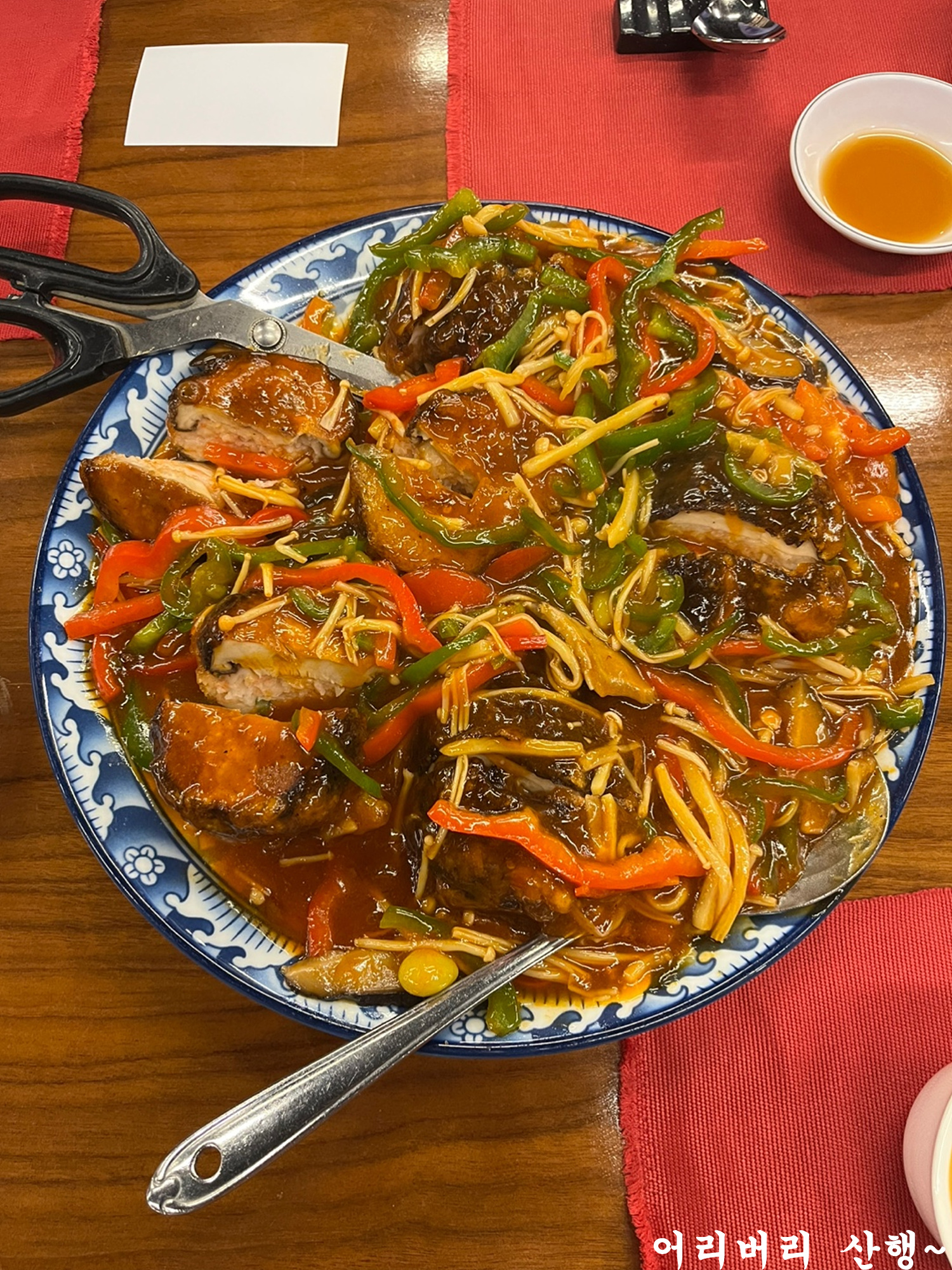 6명이서 요리두 개에 식사 각각 하나씩.. 칭다오 맥주도 한잔씩....