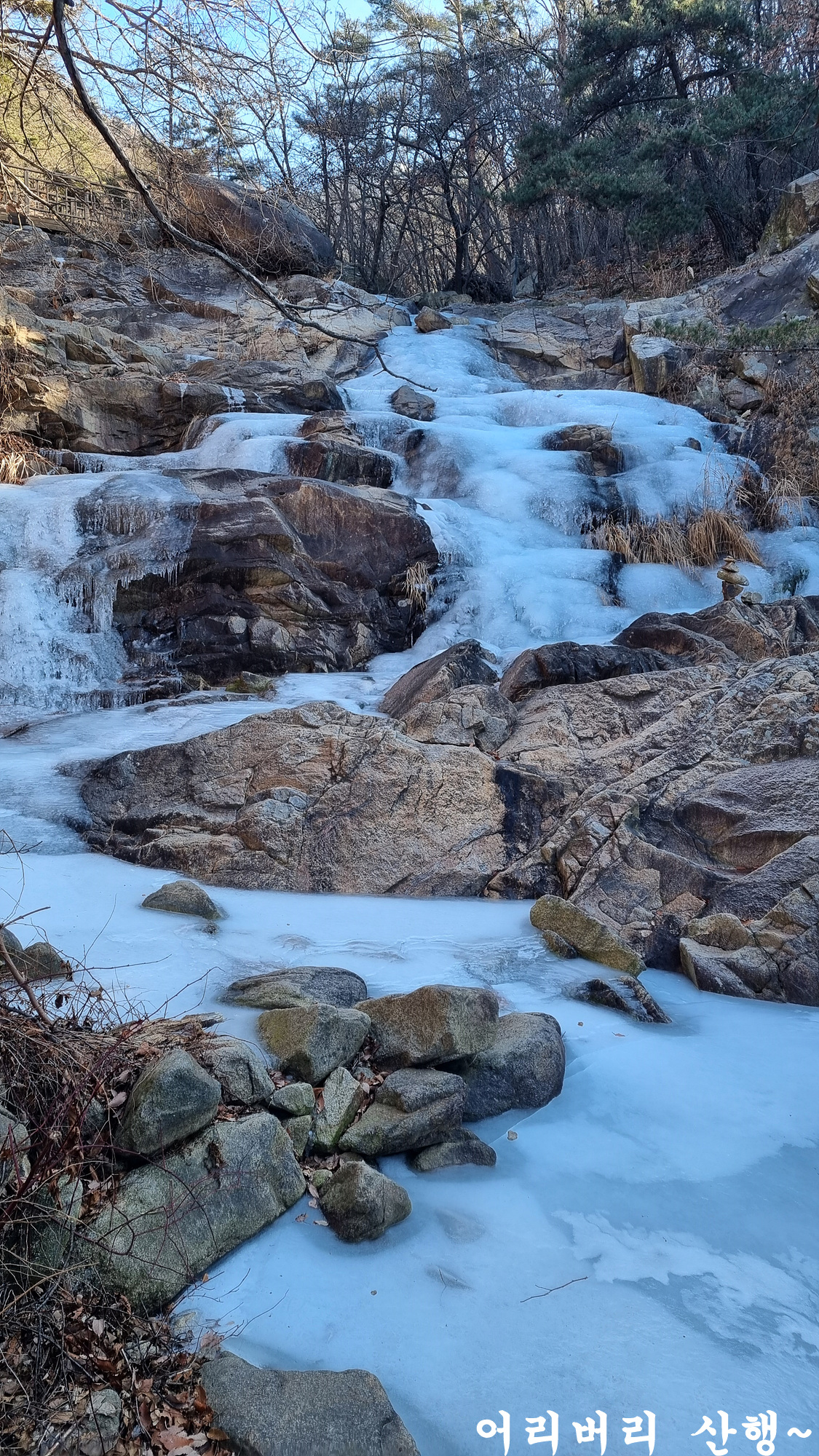 날씨가 쌀랑하니까 계곡물이 꽁꽁 얼어서 추위를 실감하게 된다.