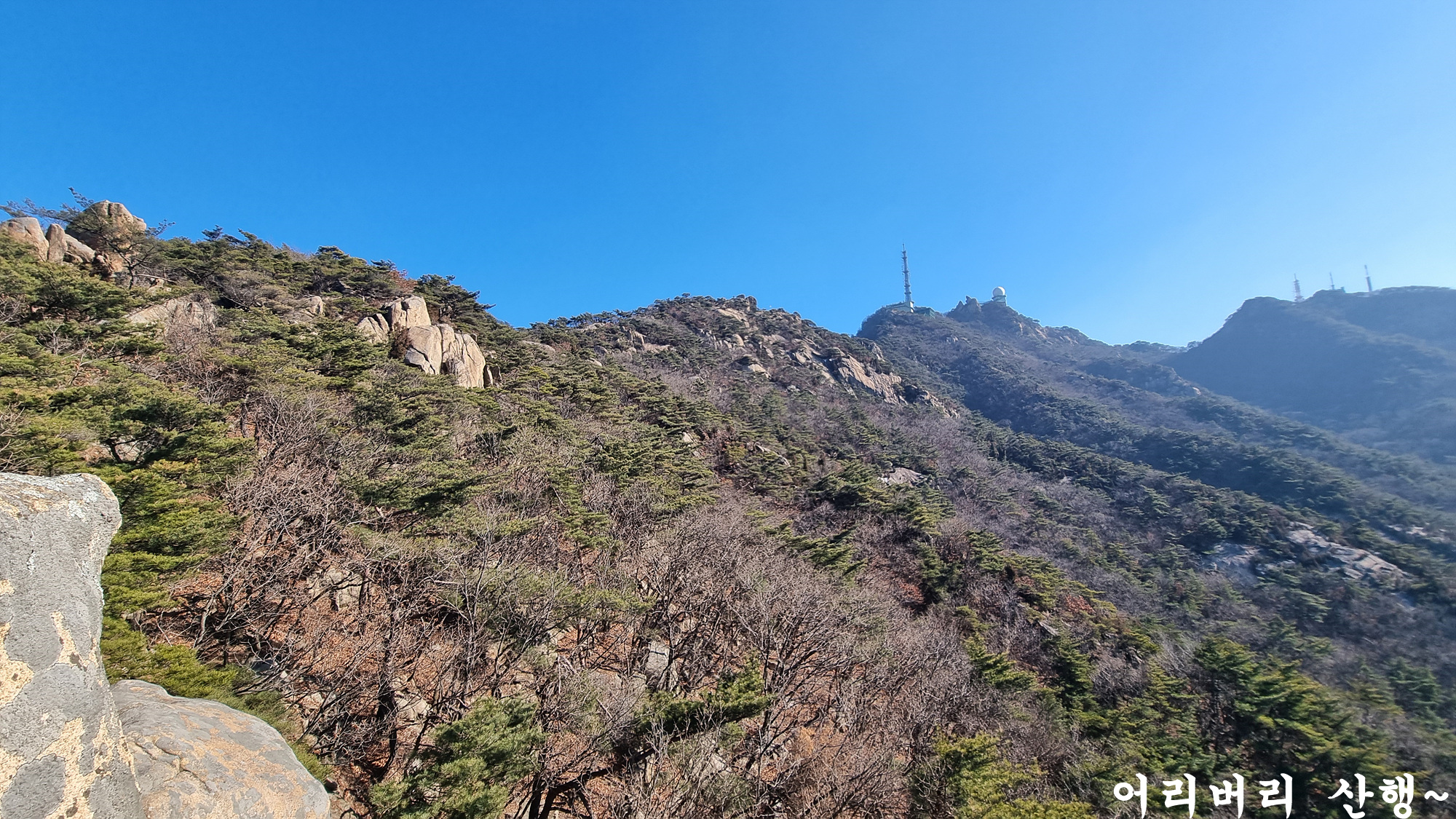 응진전에서 나와 연주대 정상을 올라와서 사당능선을 바라본다.