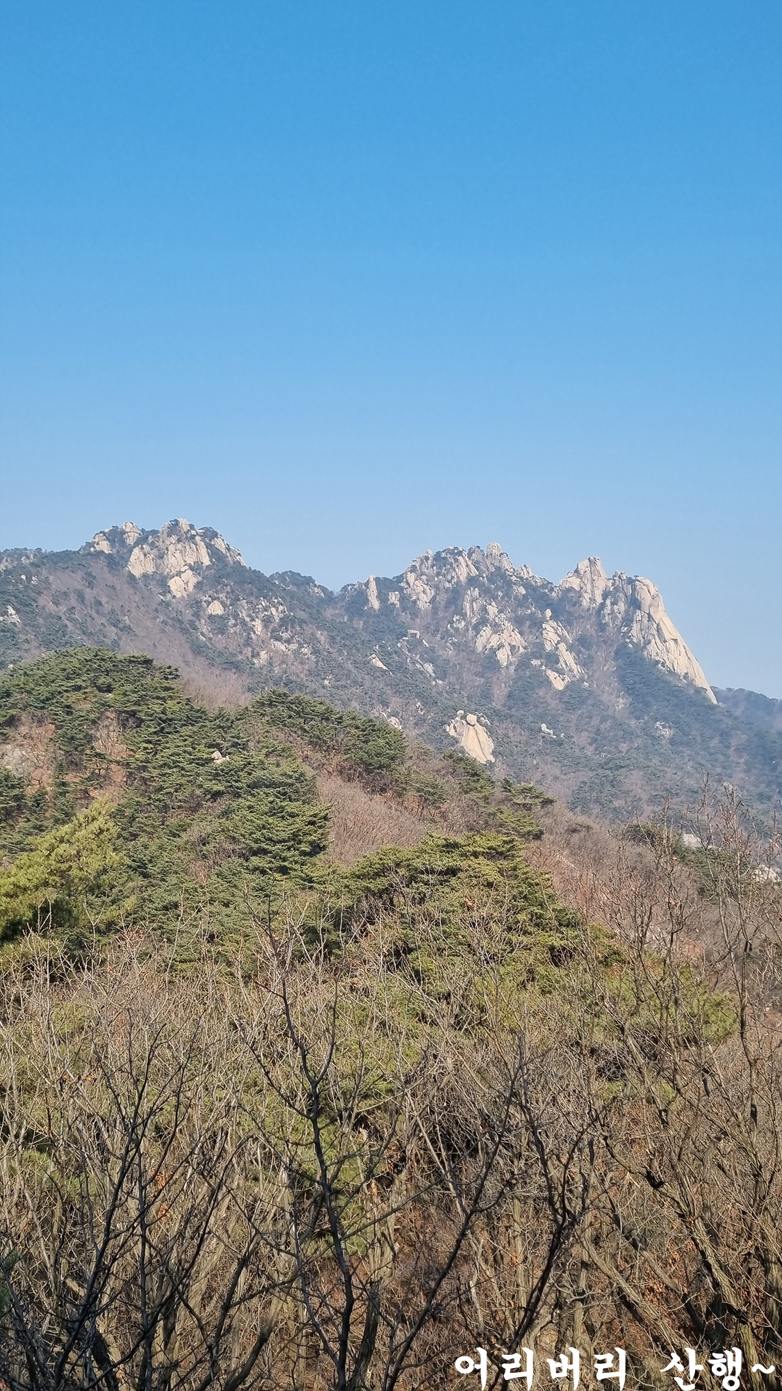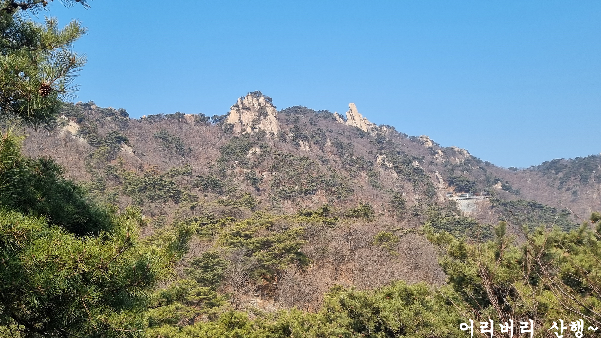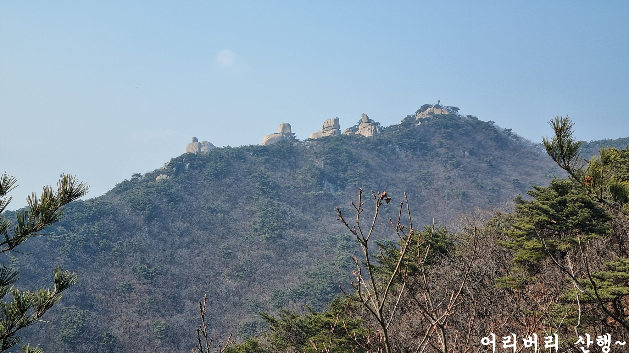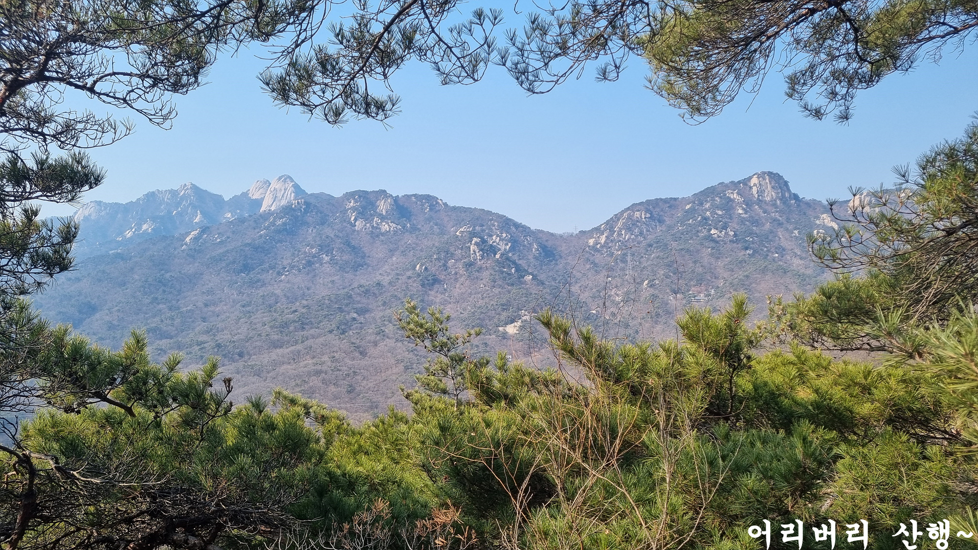 어느 정도 올라오니까 백운대 쪽 조망이 트여서 영봉과 인수봉이랑 백운대도 담아보고...