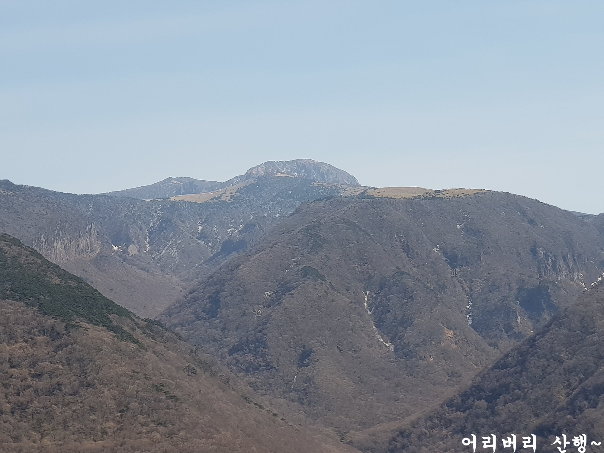 어지간히 올라오니까 건너편조망이 터지는데 어리목코스와 남벽이 한눈에 보인다.