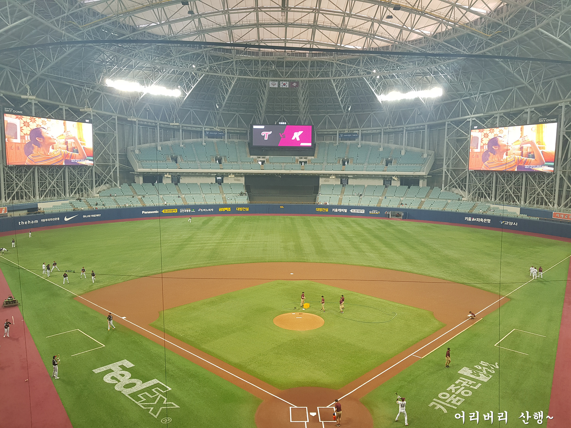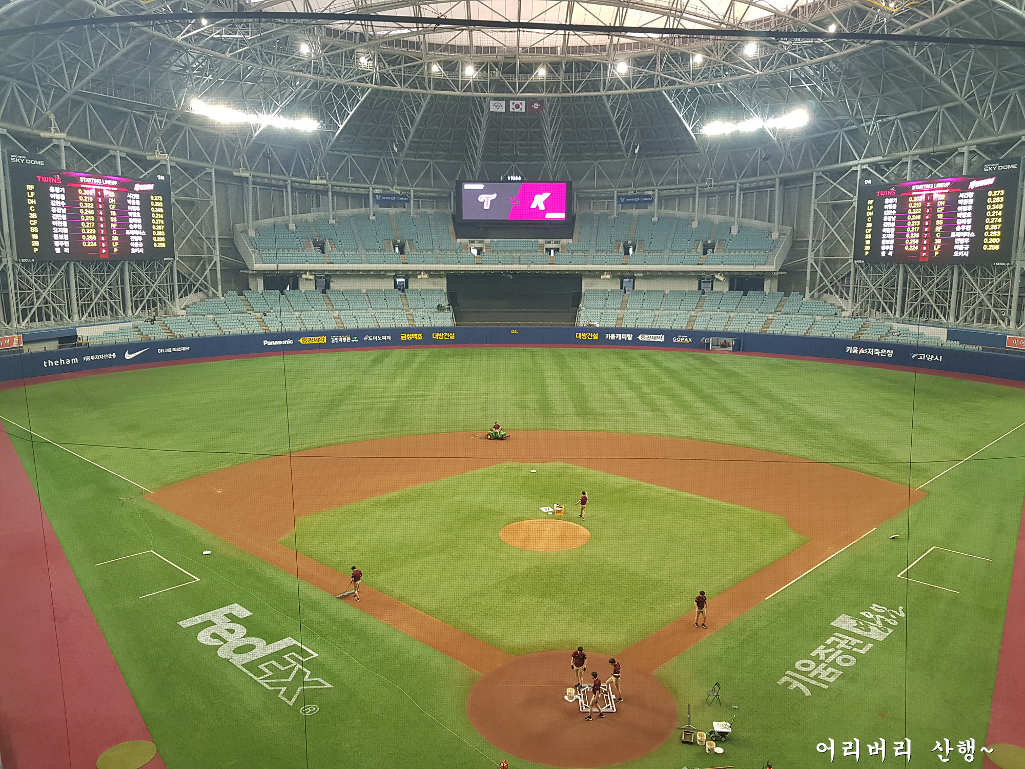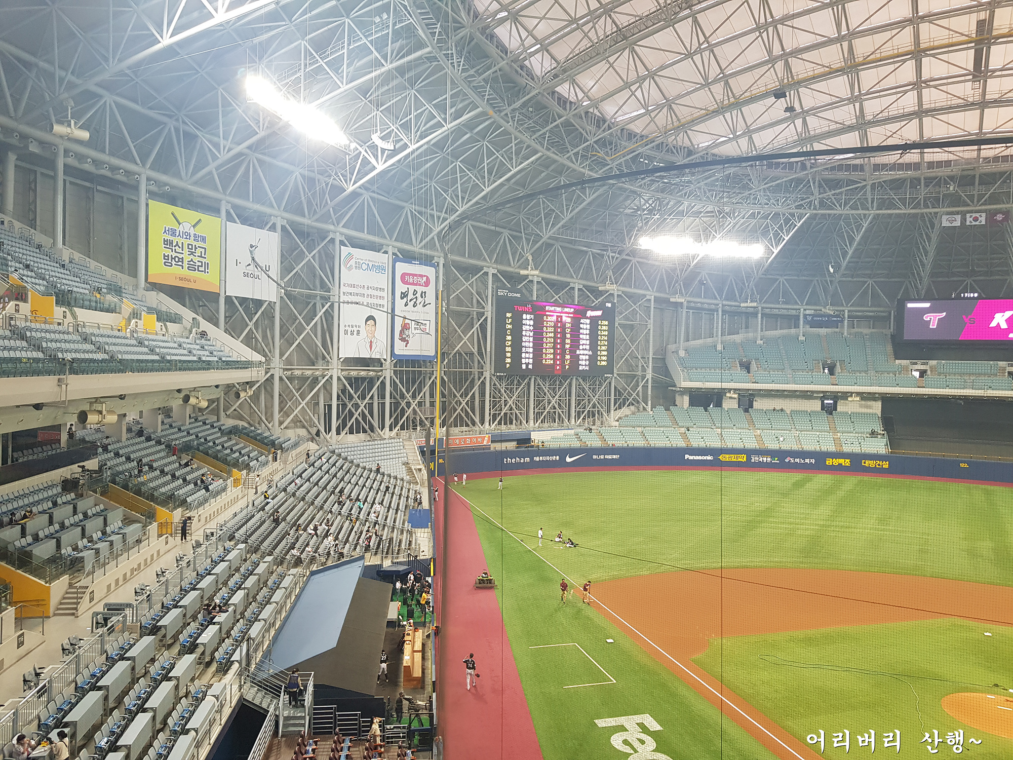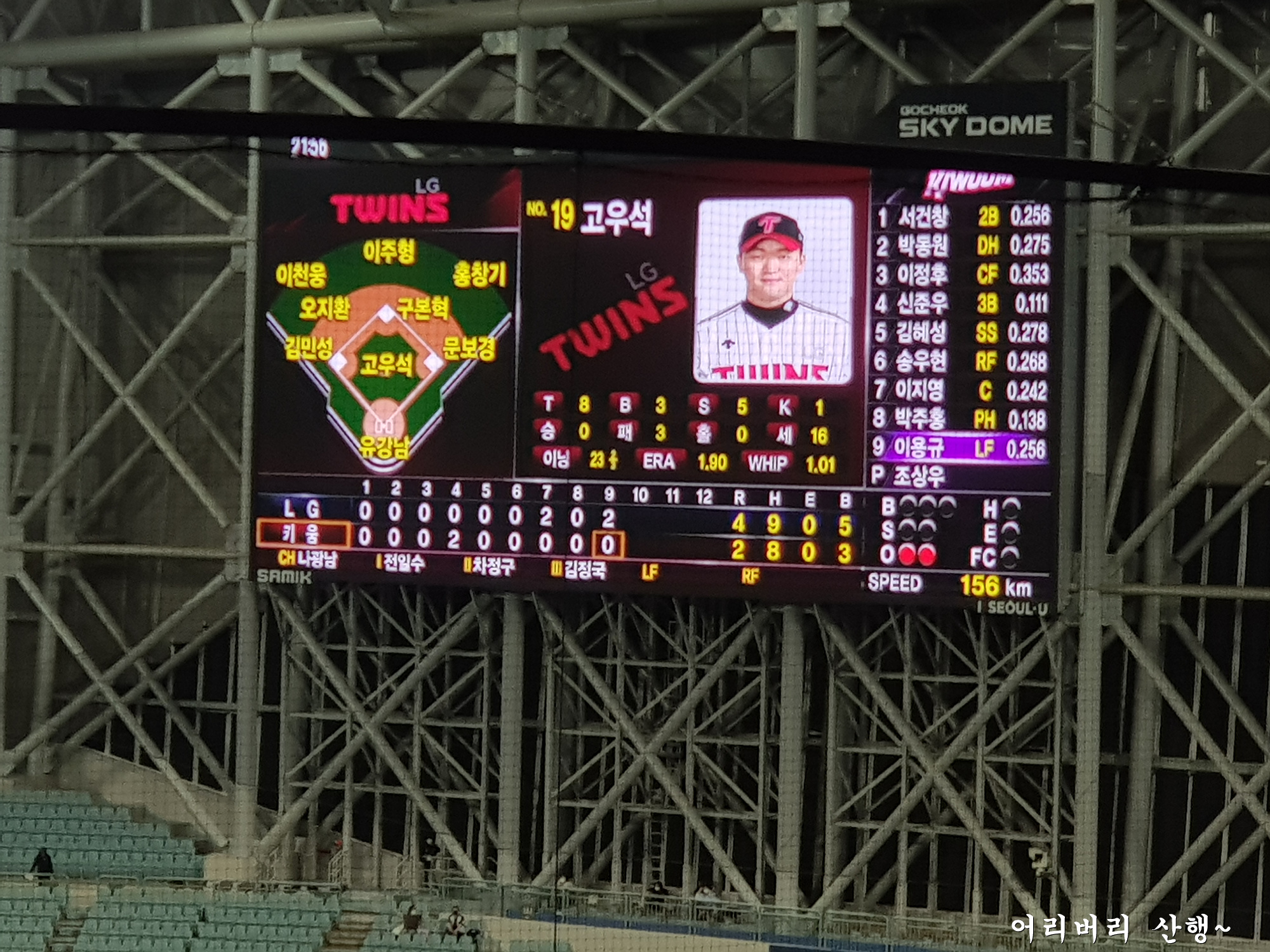 맞는다.나는 오랫만에 직관을 하려고 가까운 키움 홈구장인 고척돔에서 원정경기를 펼치는 엘지팀 응원석으로
